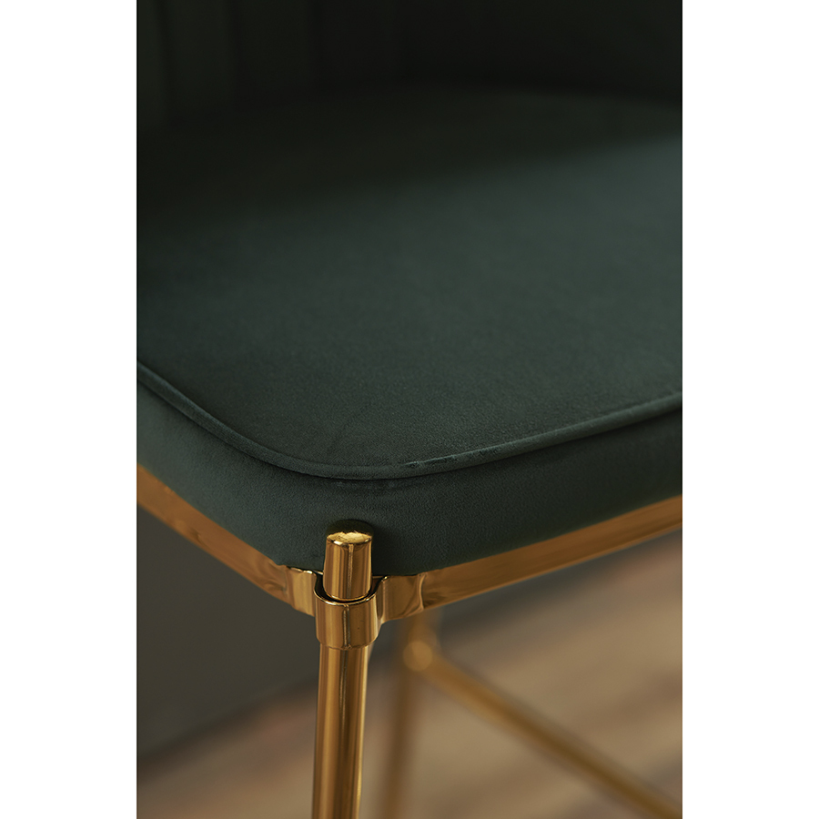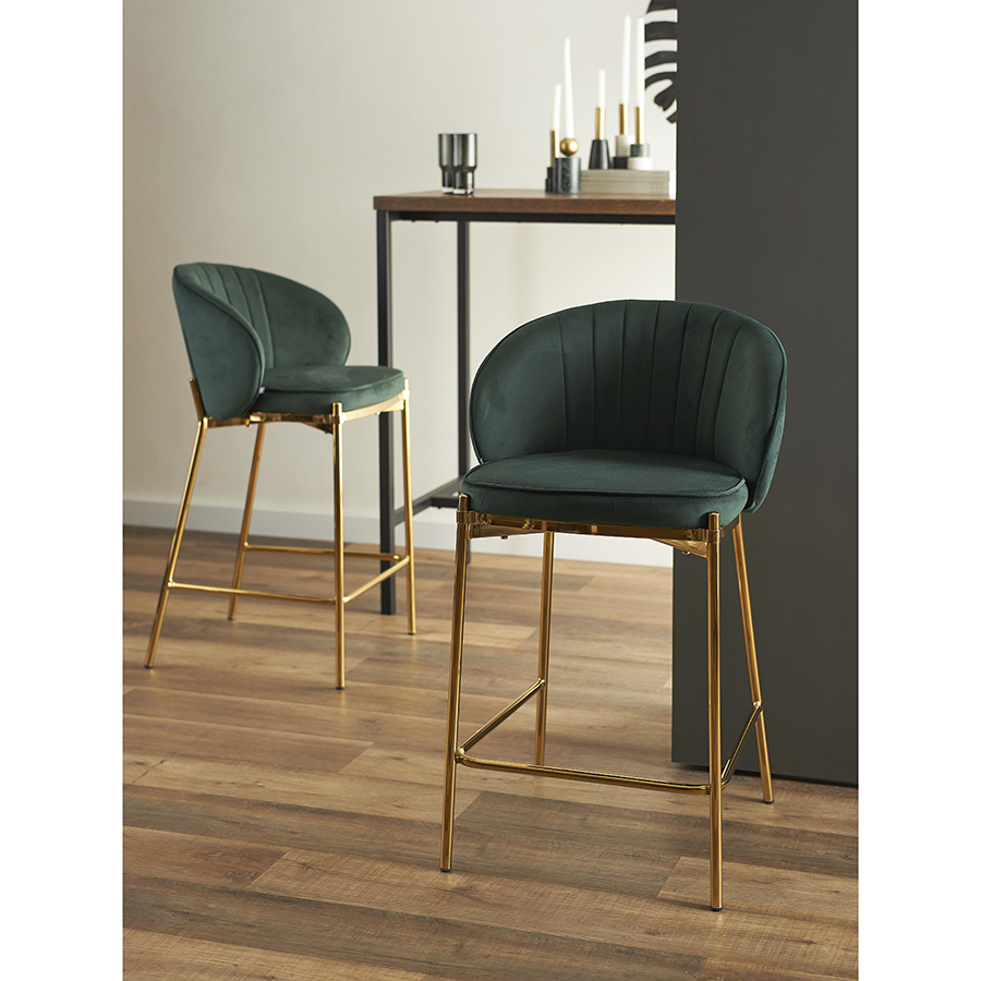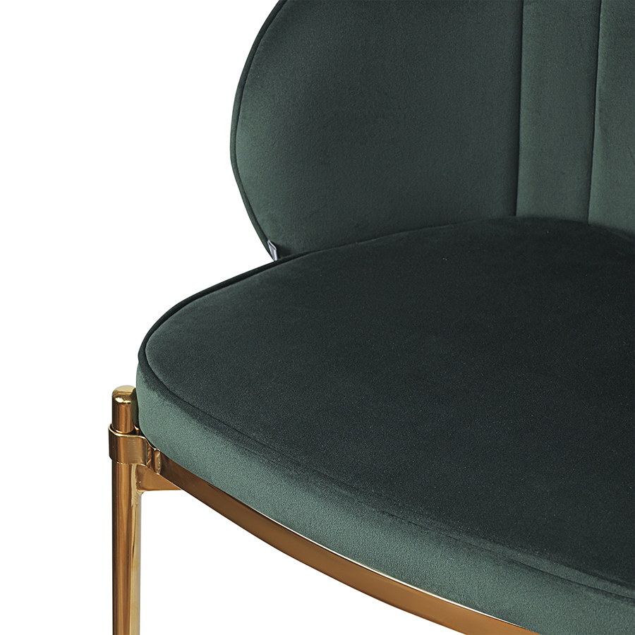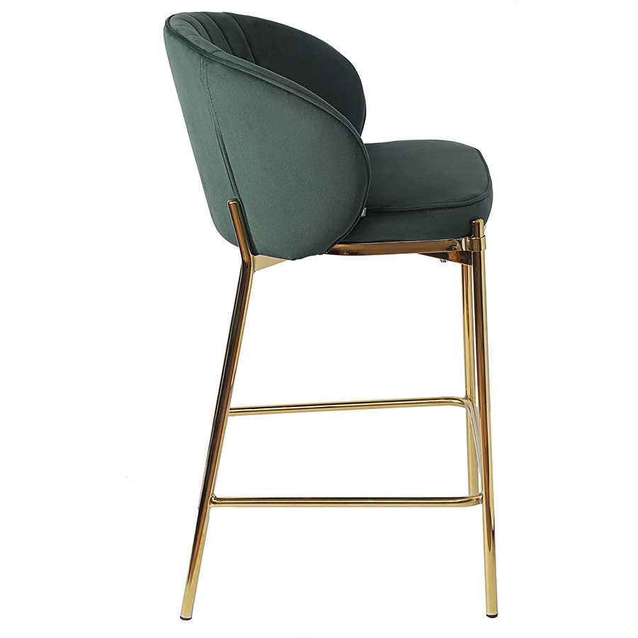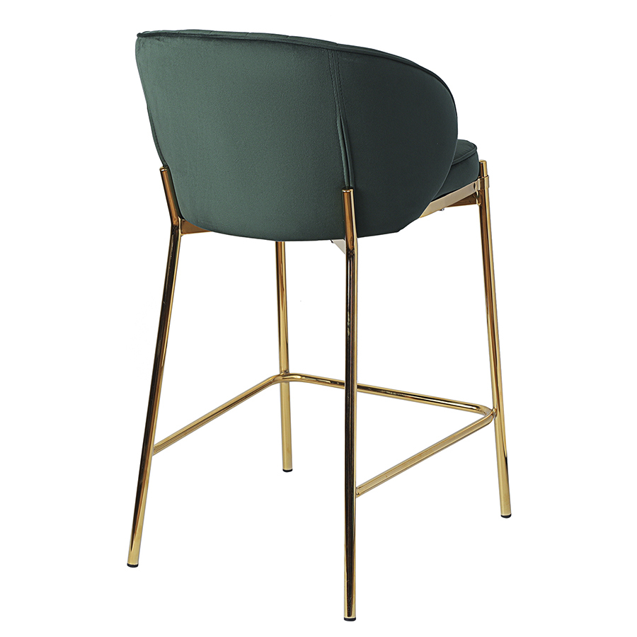 Комфорт во время отдыха на полубарном стуле создается за счет мягкого сиденья с наполнителем из пенополиуретана и высокой закругленной спинки. Обивка из бархатистого велюра, украшенная декоративной строчкой, придает модели особый шарм. Эстетический потенциал материала настолько высок, что ему сложно найти конкурентов. Помимо презентабельного вида и приятных тактильных ощущений, ткань обладает хорошими эксплуатационными характеристиками, такими как прочность, износоустойчивость и долговечность. Ножки мебели выполнены из железа с гальваническим покрытием, что обеспечивает конструкции надежность.