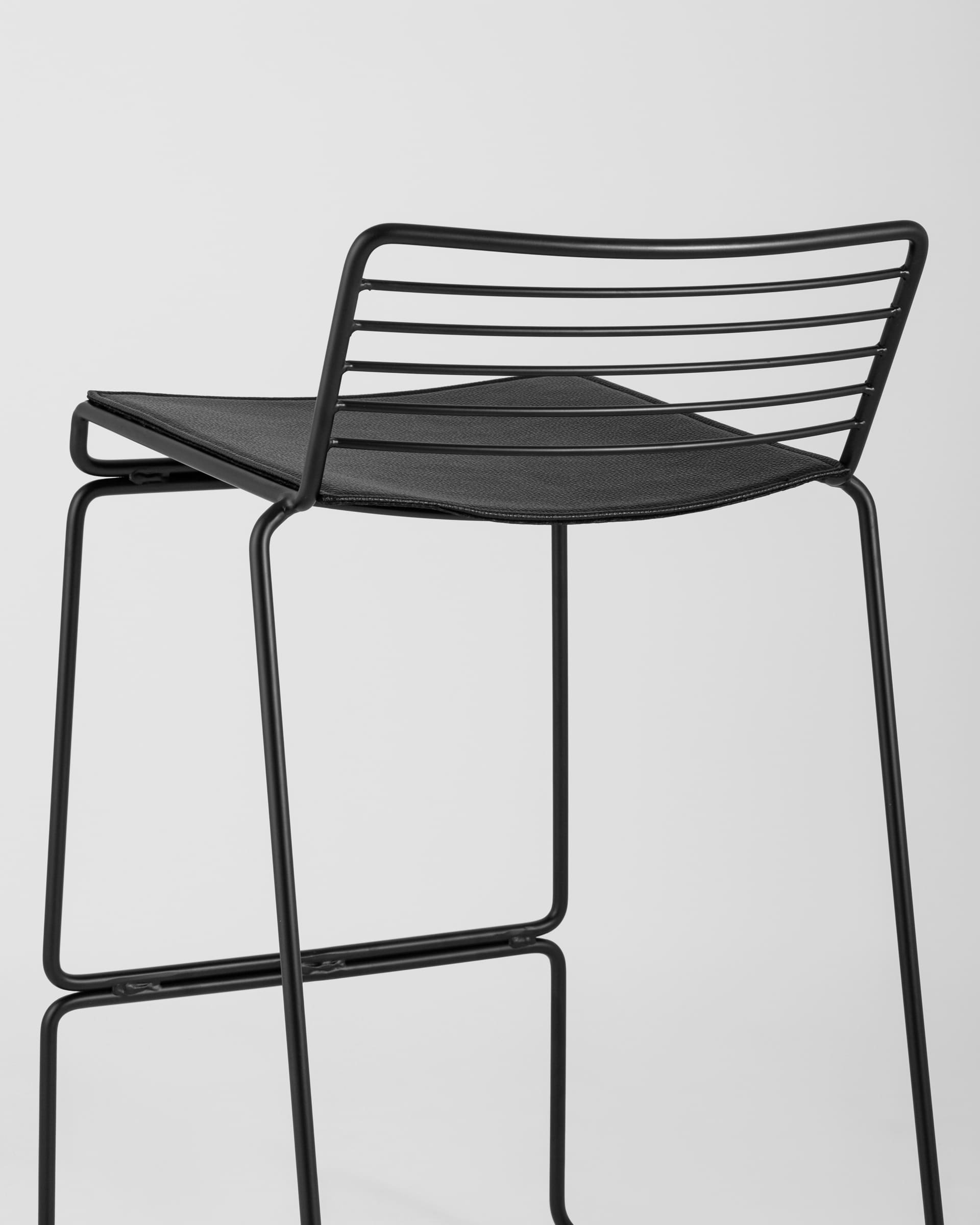 Стул полубарный Danny черный металл с черной подушкой из экокожи