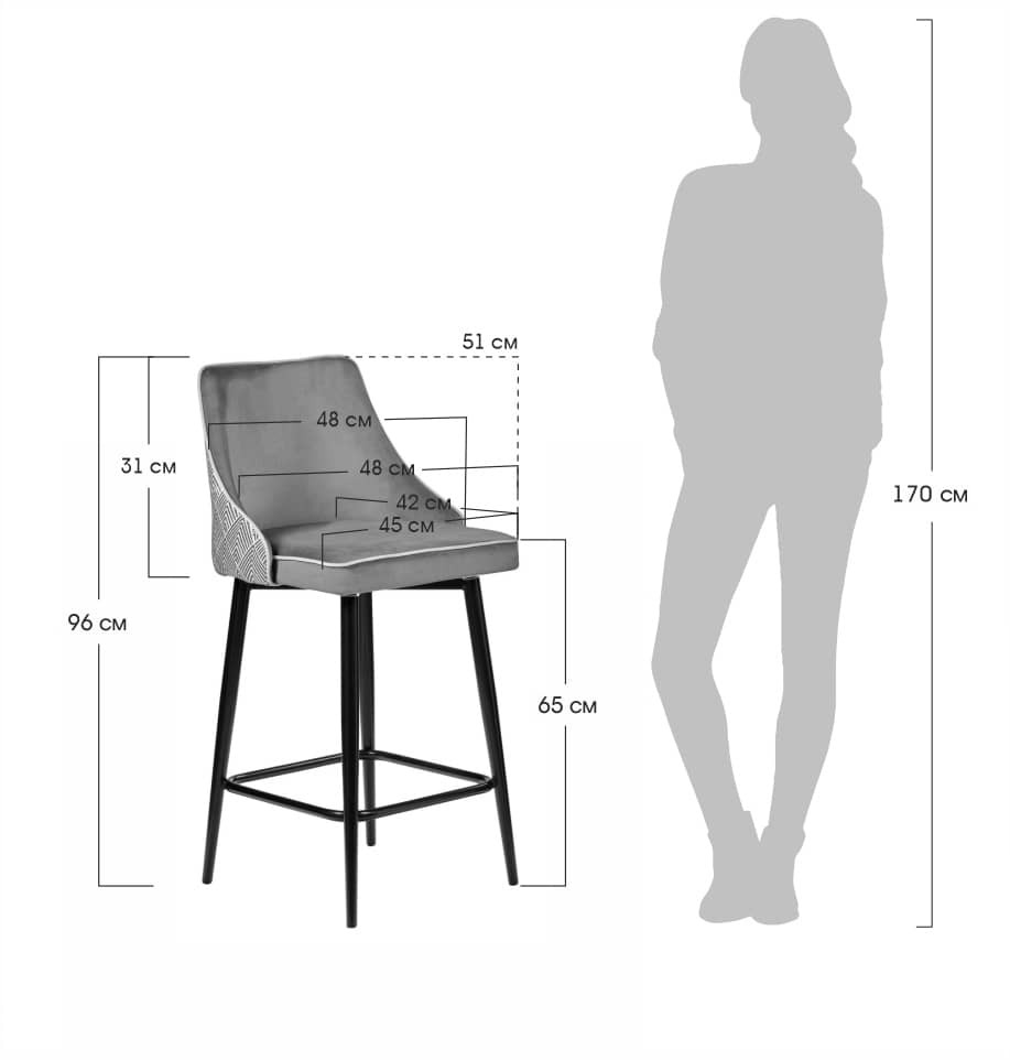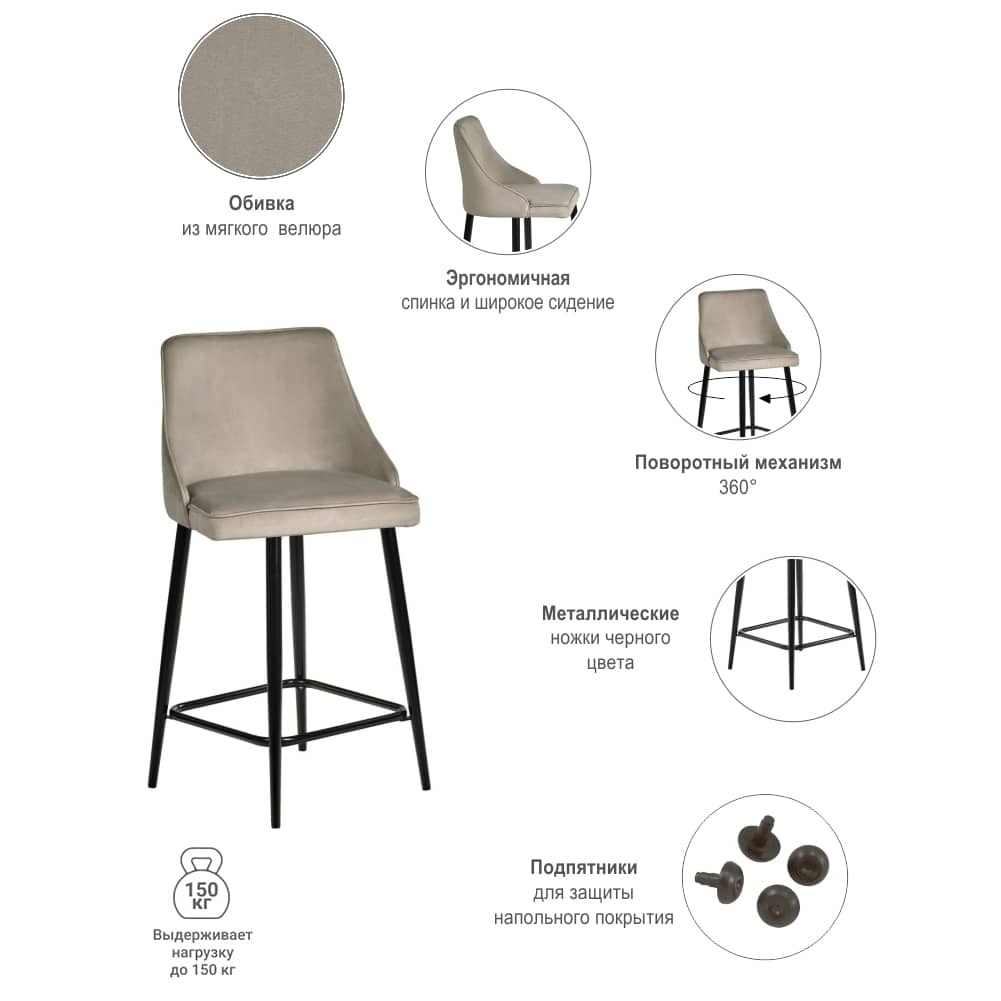 Стул Dave выполнен из приятного на ощупь и износостойкого велюра на устойчивом металлическом каркасе полубарной высоты с поворотным механизмом. Высокая мягкая спинка обеспечит позвоночнику отличную опору. Благодаря своему внешнему виду, он отлично впишется в любой современный интерьер.