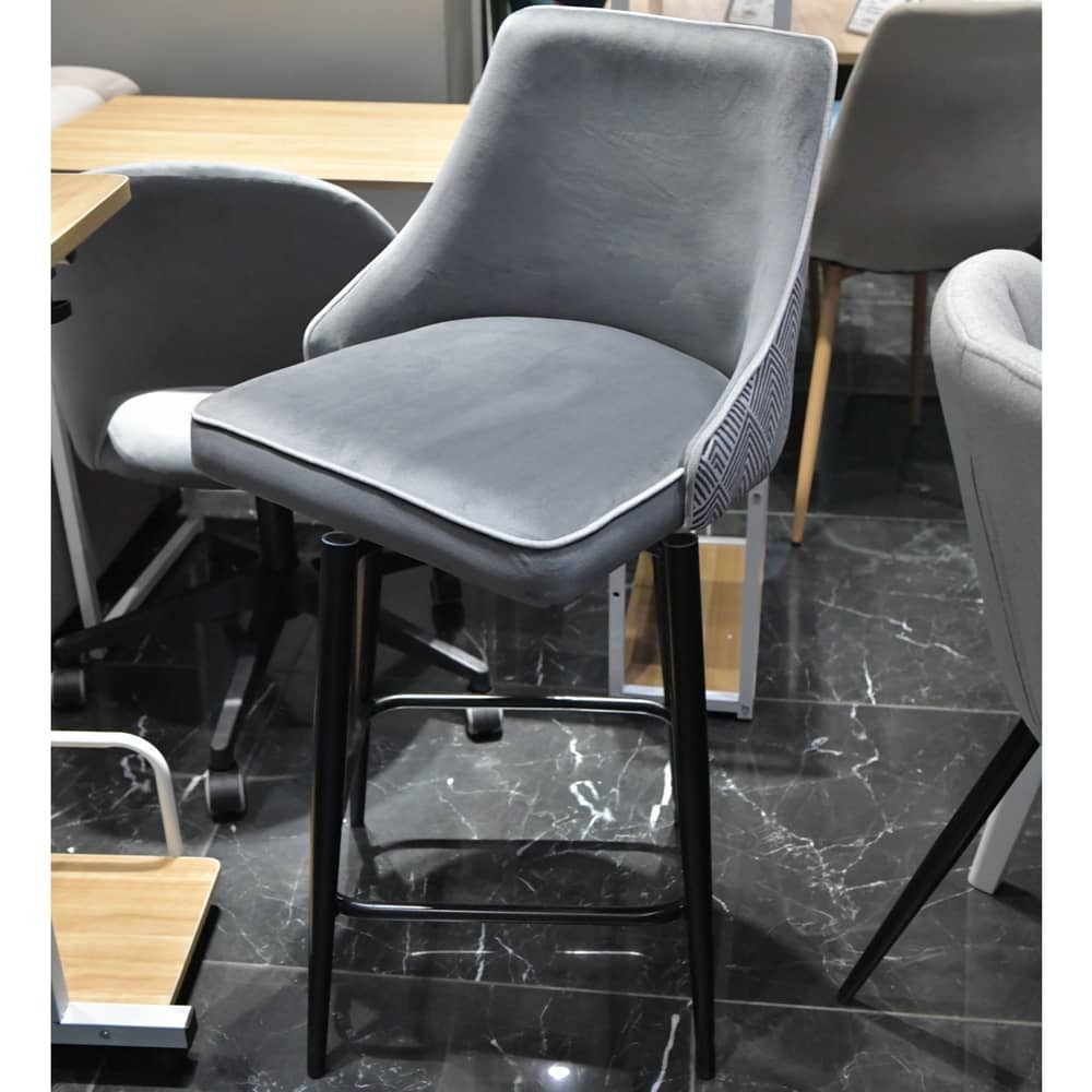 Стул Dave выполнен в комбинации обивки из жаккарда и велюра на устойчивом металлическом каркасе полубарной высоты с поворотным механизмом. Высокая мягкая спинка обеспечит позвоночнику отличную опору. Благодаря своему внешнему виду, он отлично впишется в любой современный интерьер.