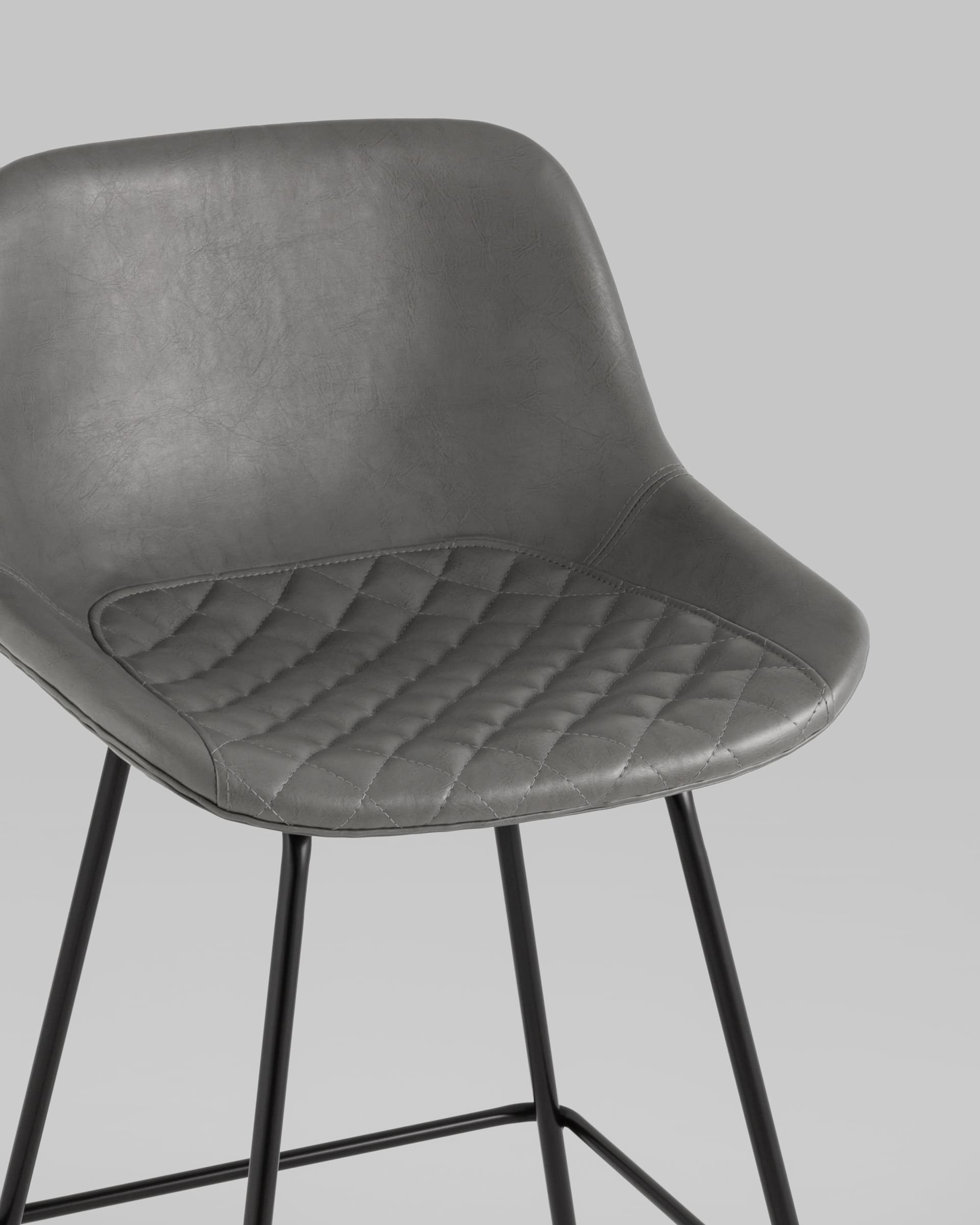 Полубарный стул Деймон обивка серая экокожа, ножки черные металл