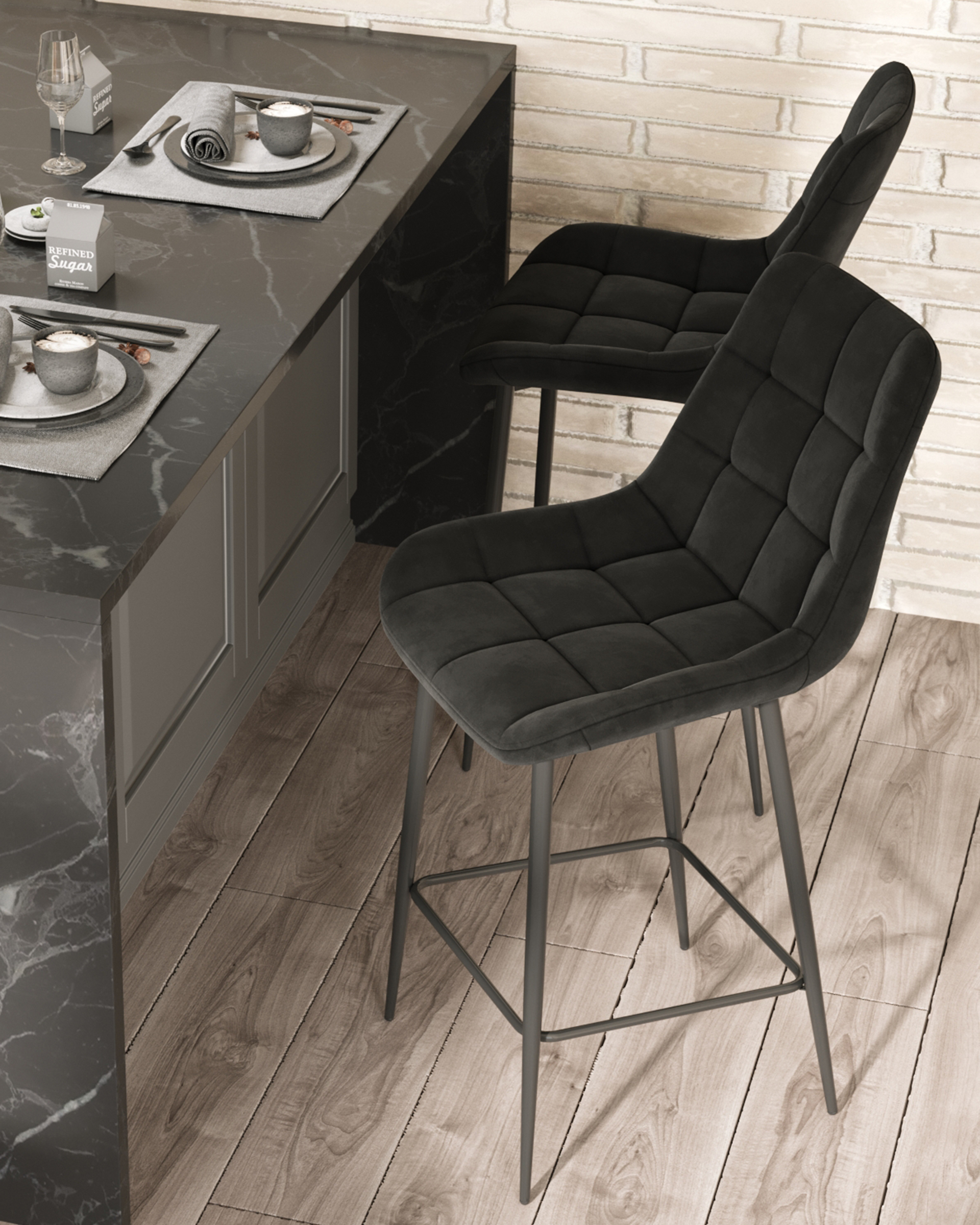 Стул полубарный Флекс обивка велюр черный ножки металл черные