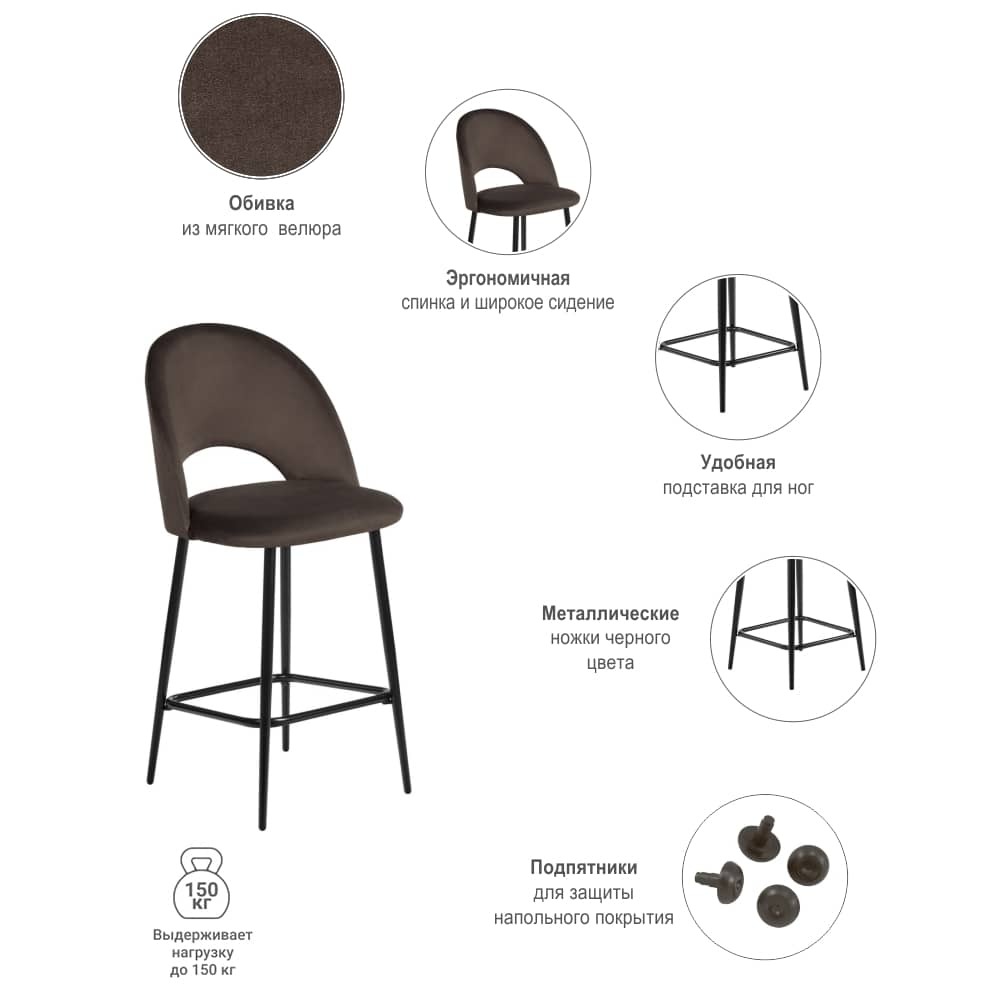 Лаконичный дизайн полубарного стула Leo с полукруглой спинкой в велюровой обивке понравится любителям комфорта и уюта. Благодаря сдержанным расцветкам и оригинальному силуэту стулья Leo подходят не только для домашних интерьеров, но и для оформления кафе, холлов отелей или офисных центров.