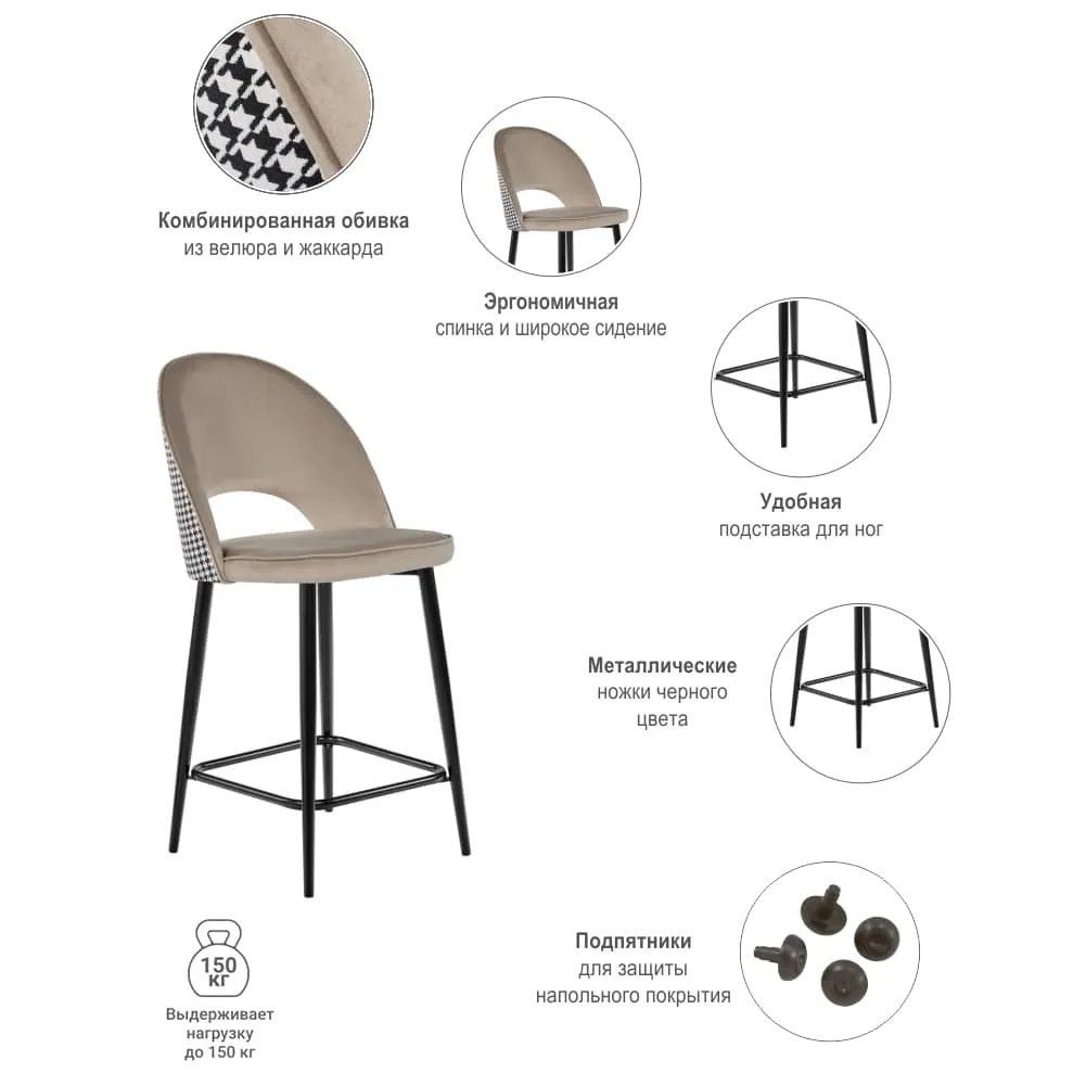 Лаконичный дизайн полубарного стула Leo с полукруглой спинкой в велюровой обивке понравится любителям комфорта и уюта. Выполенен на устойчивом металлическом каркасе полубарной высоты с поворотным механизмом. Благодаря сдержанным расцветкам и оригинальному силуэту стулья Leo подходят не только для домашних интерьеров, но и для оформления кафе, холлов отелей или офисных центров.