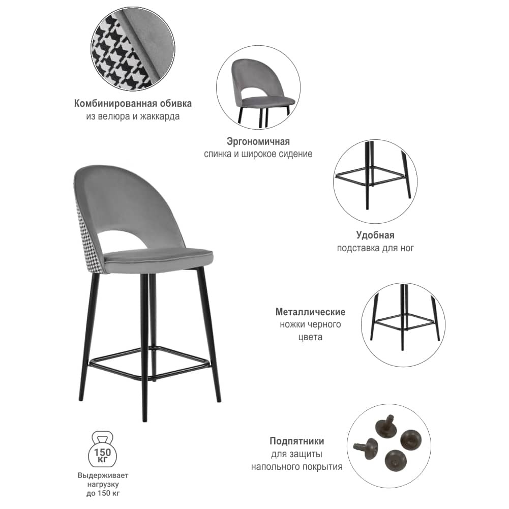 Лаконичный дизайн полубарного стула Leo с полукруглой спинкой в велюровой обивке понравится любителям комфорта и уюта. Выполенен на устойчивом металлическом каркасе полубарной высоты с поворотным механизмом. Благодаря сдержанным расцветкам и оригинальному силуэту стулья Leo подходят не только для домашних интерьеров, но и для оформления кафе, холлов отелей или офисных центров.