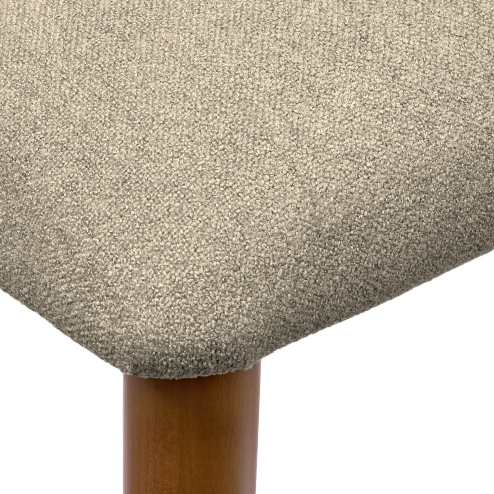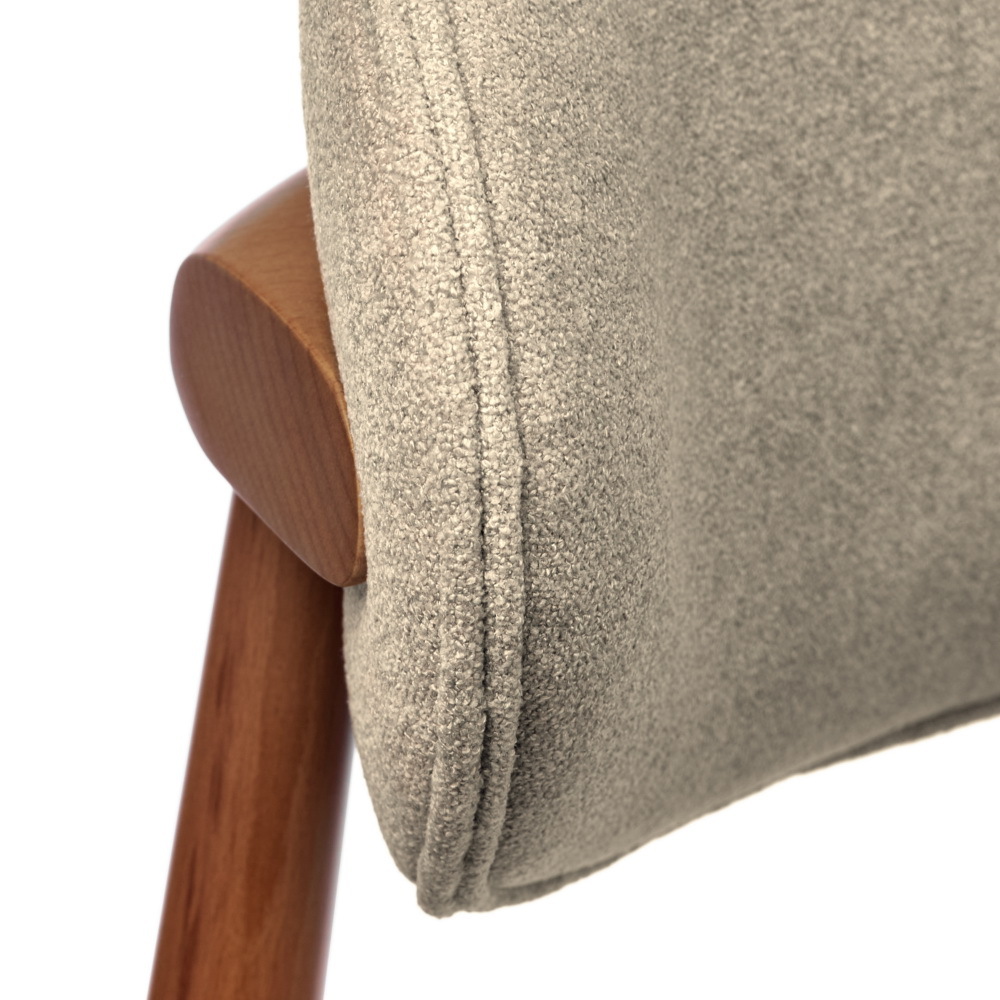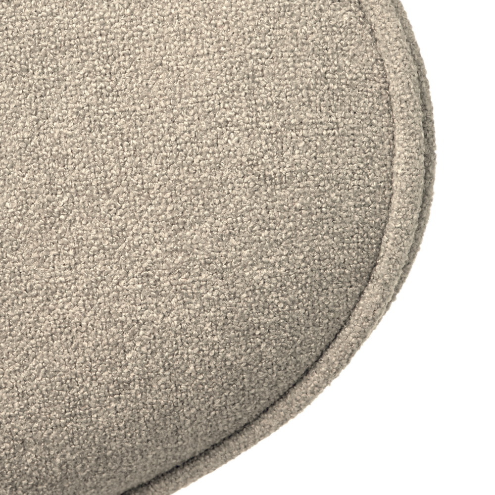 Сиденье и спинка изготовлены из высококачественной уютной ткани букле серии Like, приятной на ощупь и устойчивой к износу. Рельеф поверхности ткани придаёт пространству природную текстуру, смягчает углы мебельных форм и подчёркивает силуэт мягкой мебели. Мягкая обивка из букле не только нежная на ощупь, но и прочная благодаря трикотажной основе. Она хорошо держит форму, легко драпируется и не мнётся. Тонкая текстура букле создаёт тёплую и уютную атмосферу в любом помещении.