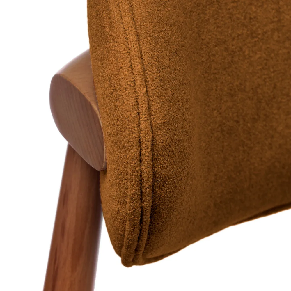 Сиденье и спинка изготовлены из высококачественной уютной ткани букле серии Like, приятной на ощупь и устойчивой к износу. Рельеф поверхности ткани придаёт пространству природную текстуру, смягчает углы мебельных форм и подчёркивает силуэт мягкой мебели. Мягкая обивка из букле не только нежная на ощупь, но и прочная благодаря трикотажной основе. Она хорошо держит форму, легко драпируется и не мнётся. Тонкая текстура букле создаёт тёплую и уютную атмосферу в любом помещении.
