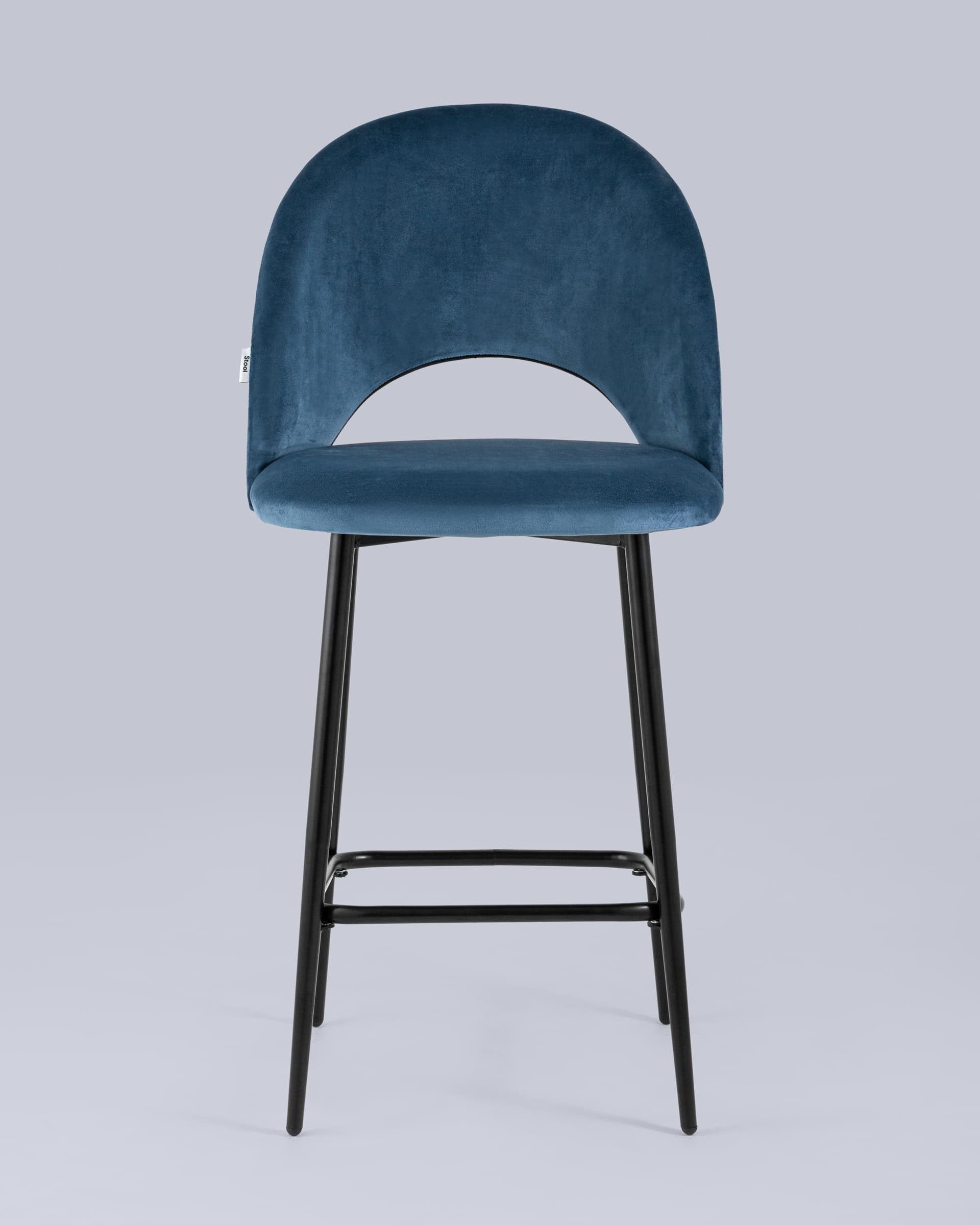 Стул полубарный Меган обивка велюр пыльно-синий ножки металл черные