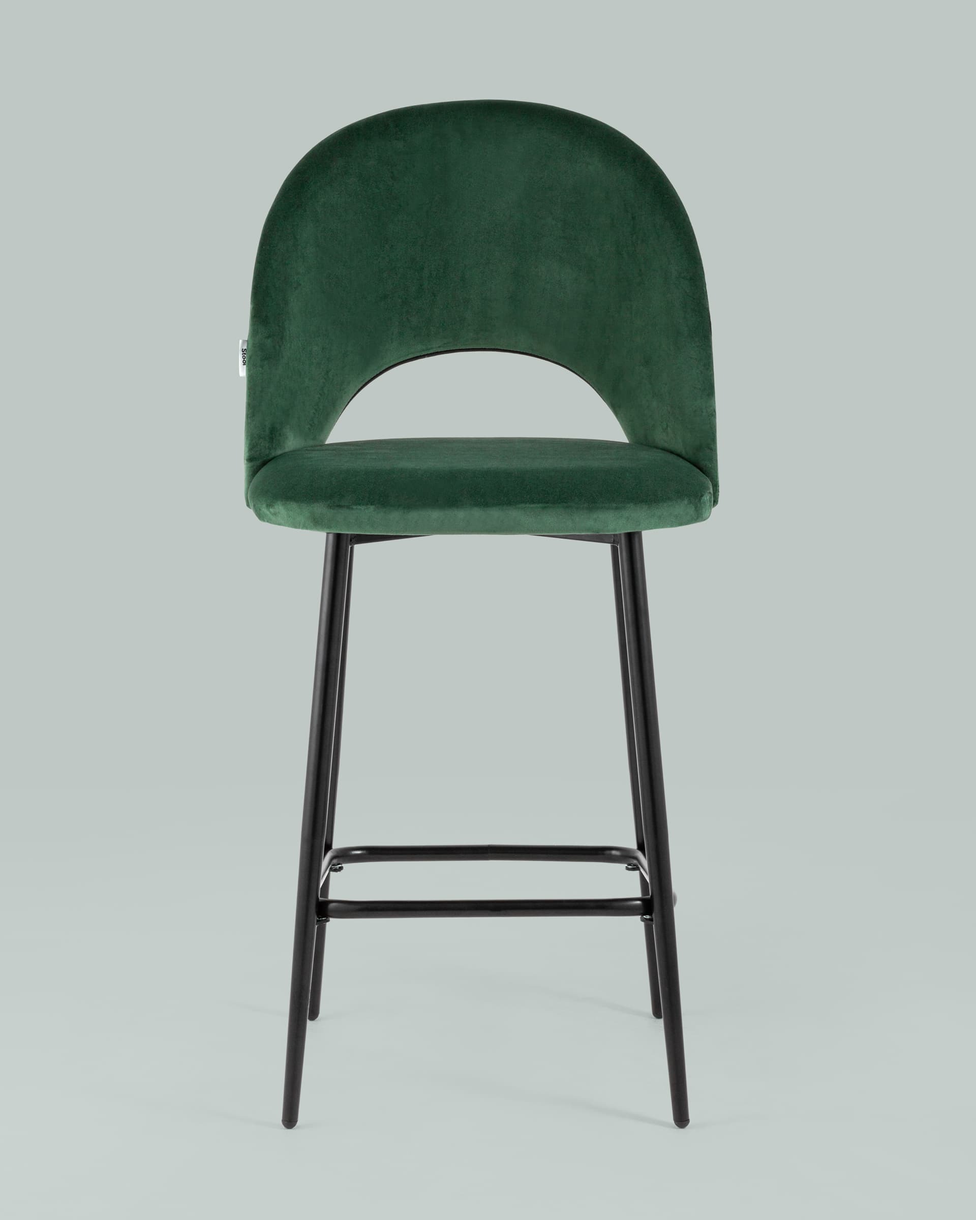 Стул полубарный Меган обивка велюр зеленый ножки металл черные