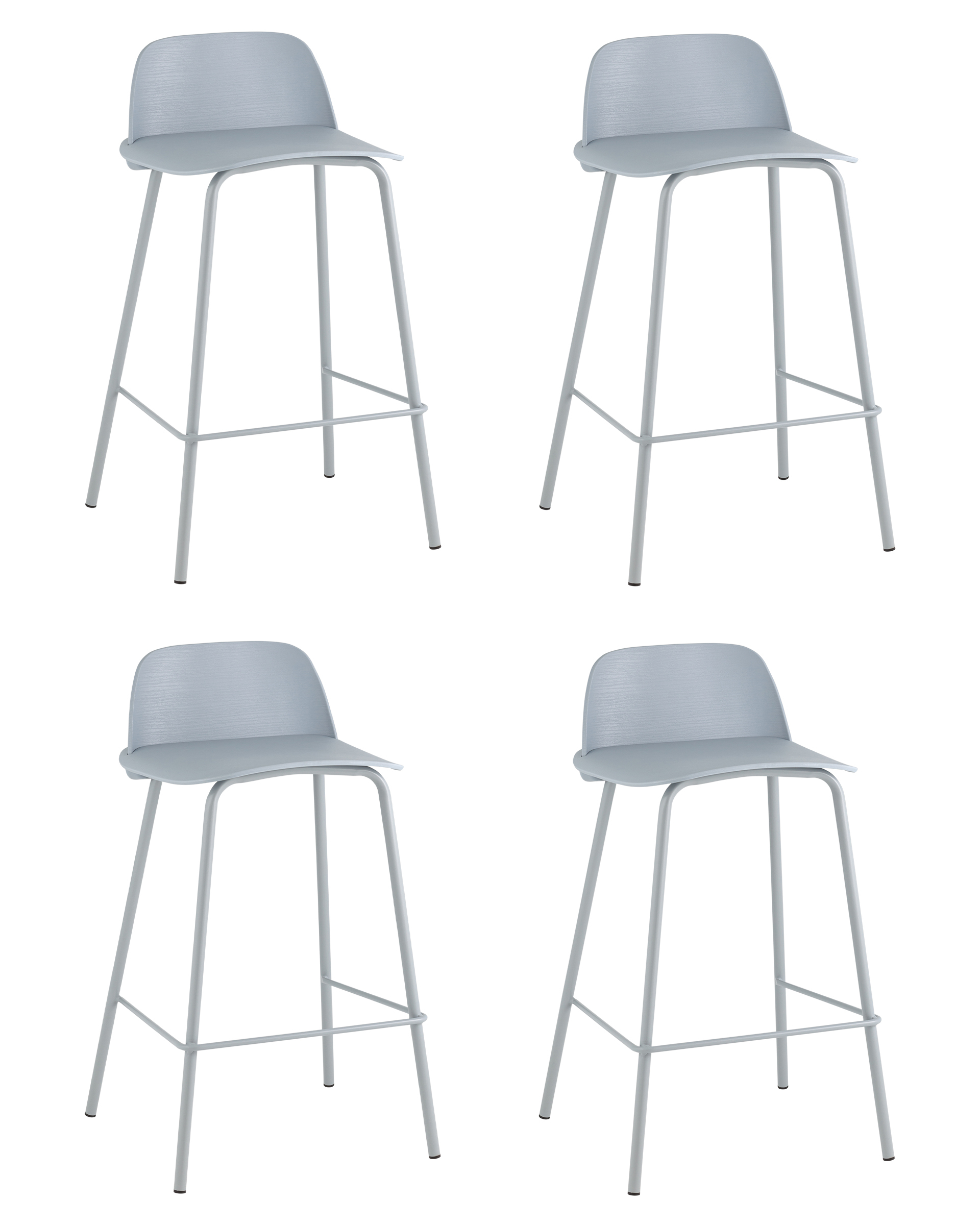 Комплект из четырех полубарных стульев Mist пластиковое сиденье, серо-голубой, ножки металл