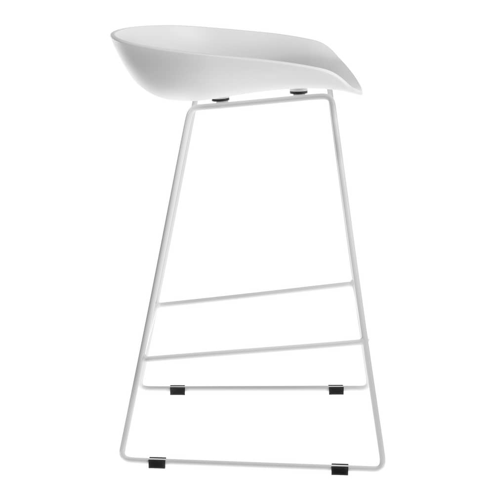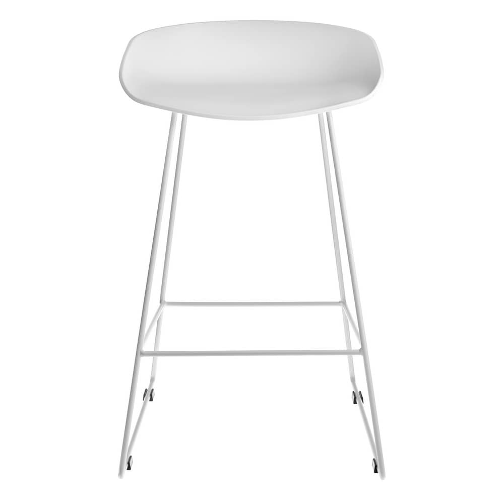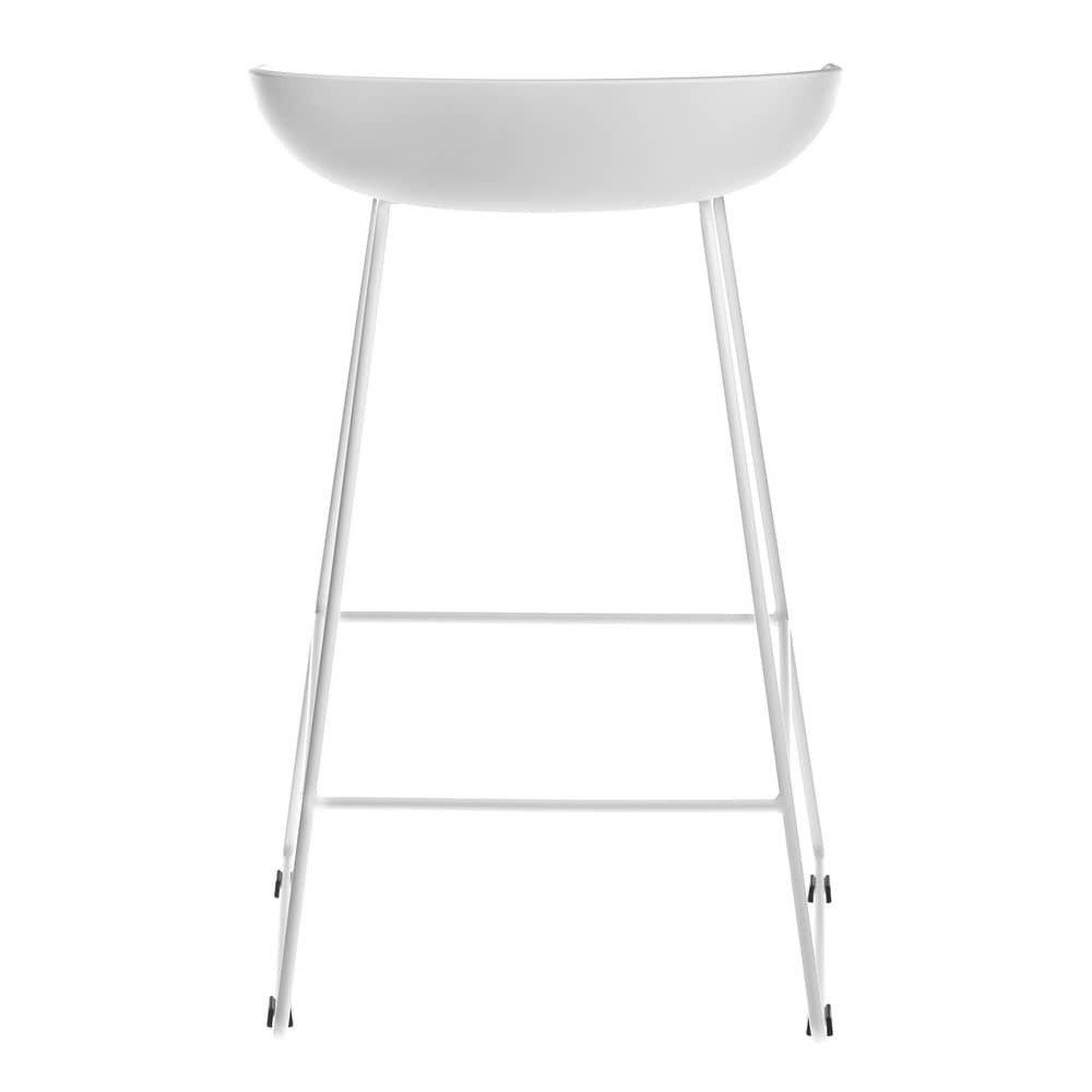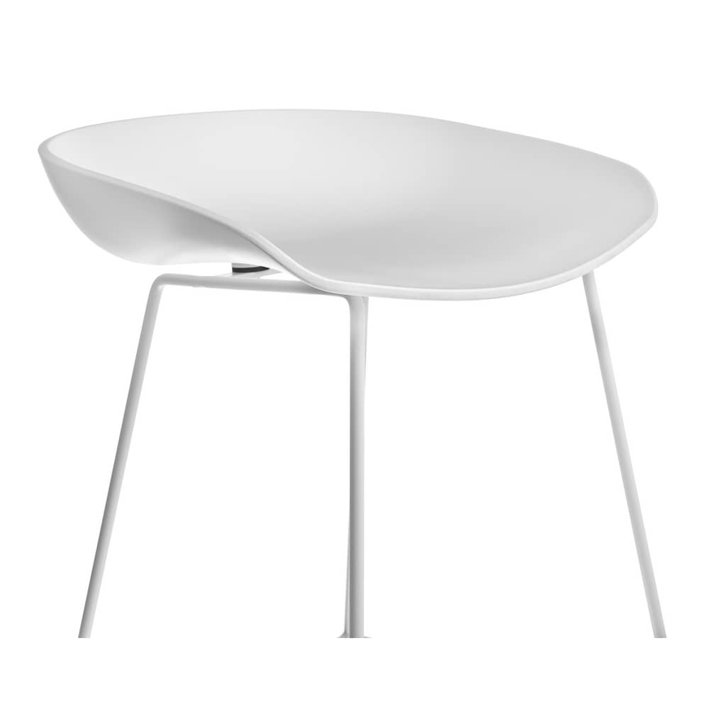 Утончённые металлические опоры, сиденье из пластика с невысокой спинкой - это минималистический современный дизайн полубарного стула NEO черный с черными ножками.