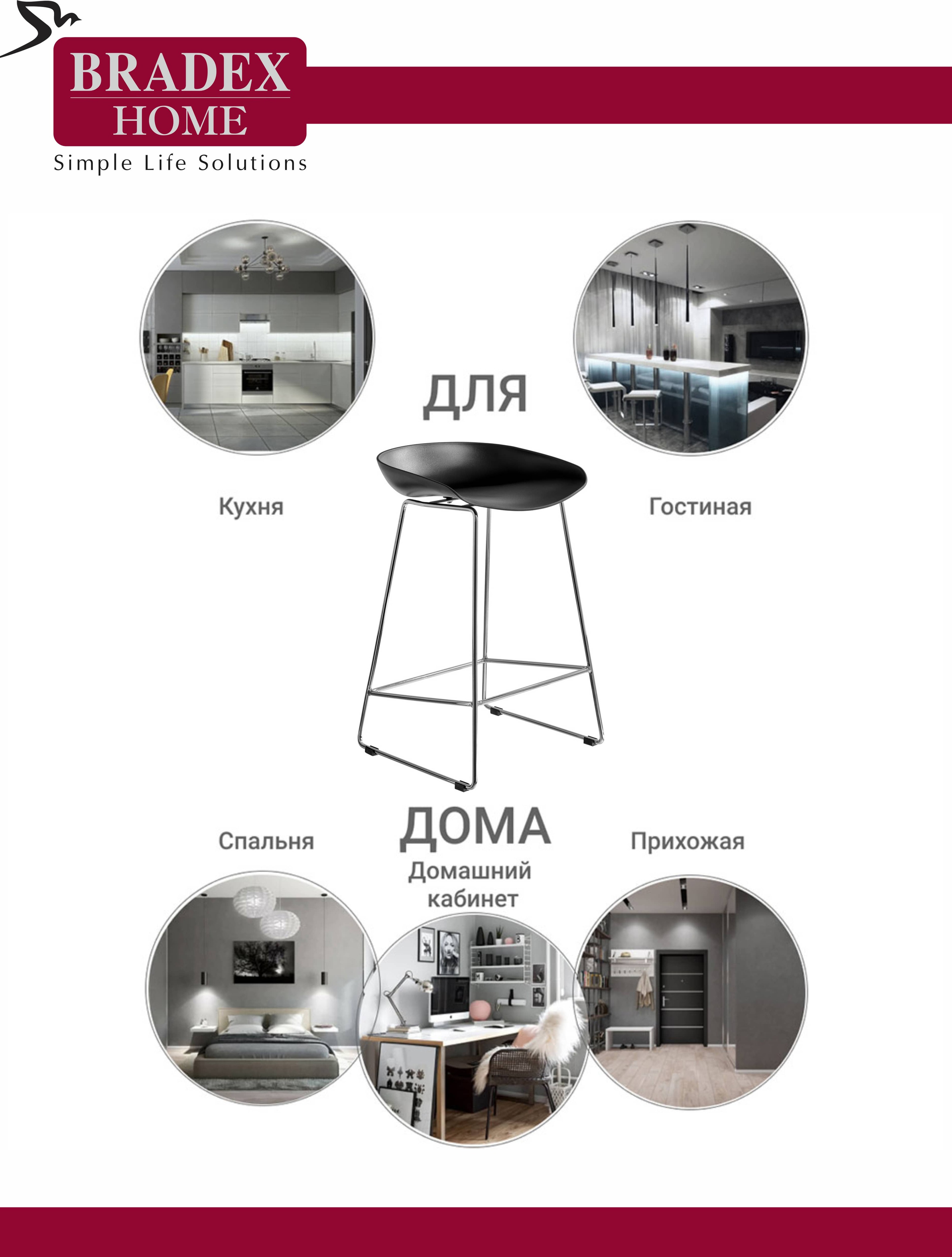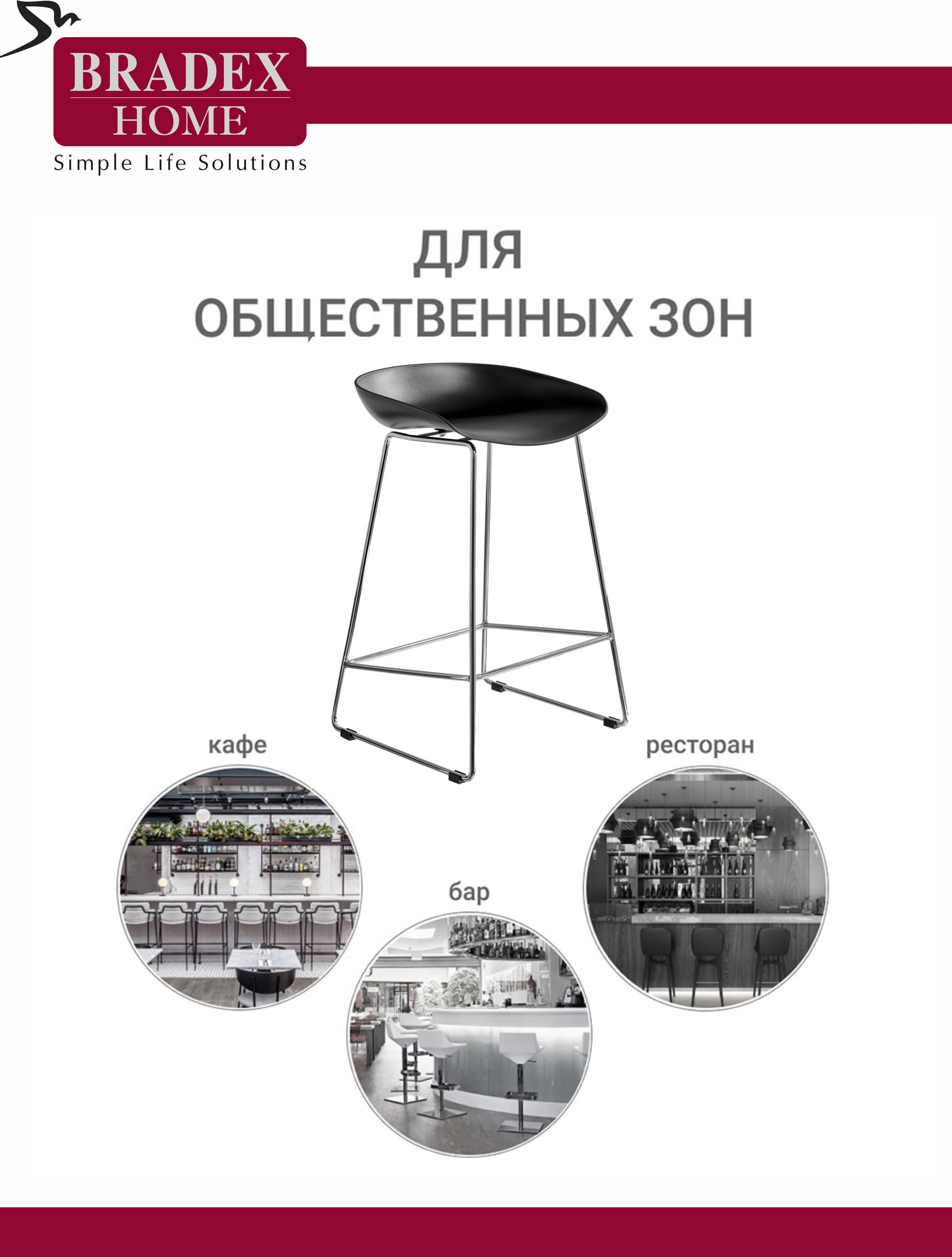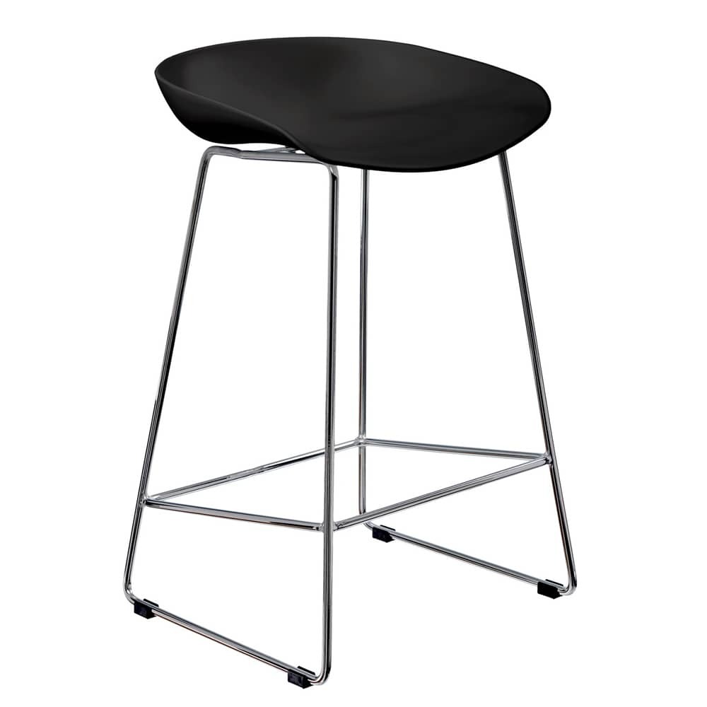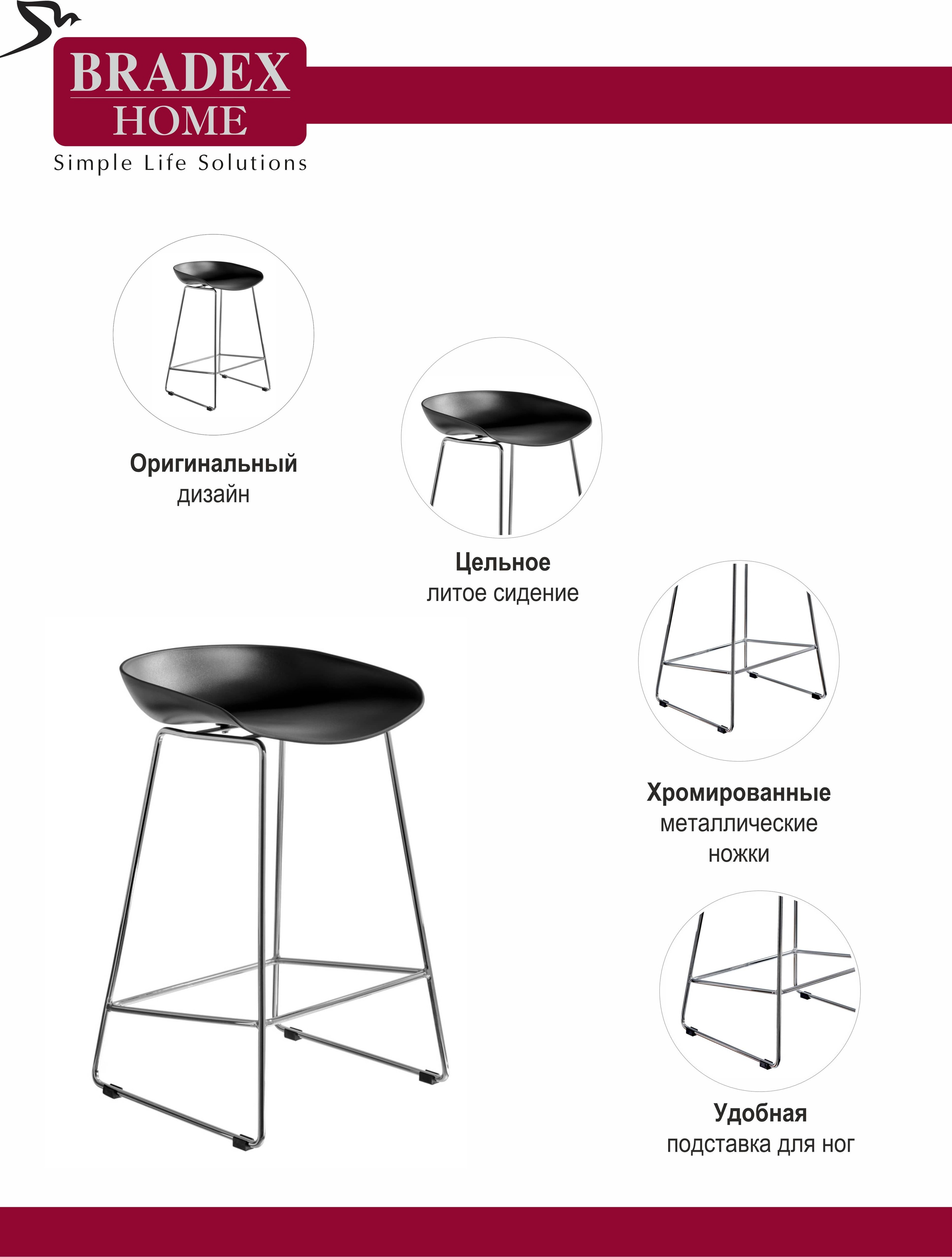 Утончённые металлические хромированные опоры, сиденье из пластика с невысокой спинкой - это минималистический современный дизайн полубарного стула NEO черный.