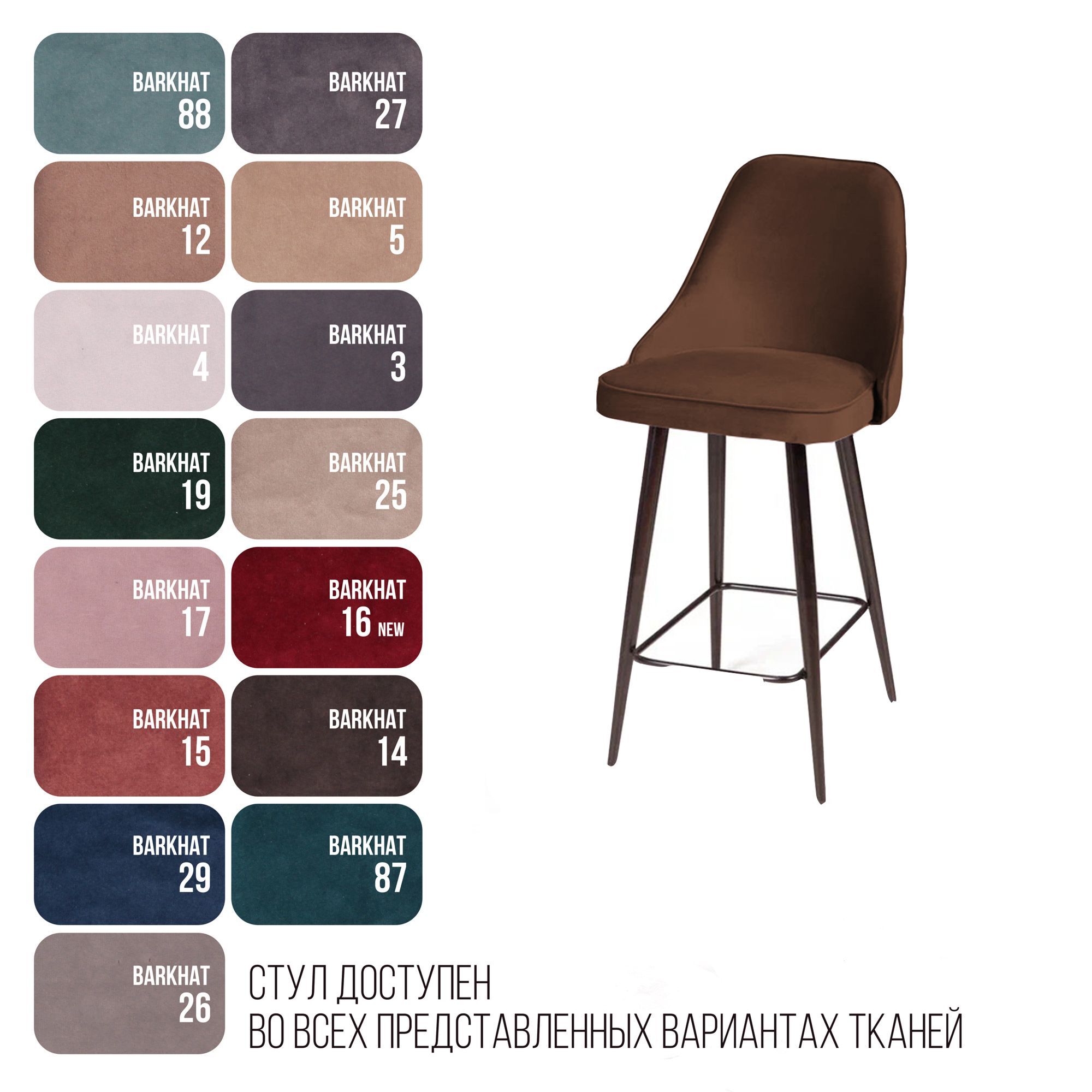 Стул полубарный Oliver, бархат коричневый 12/ чёрный конус