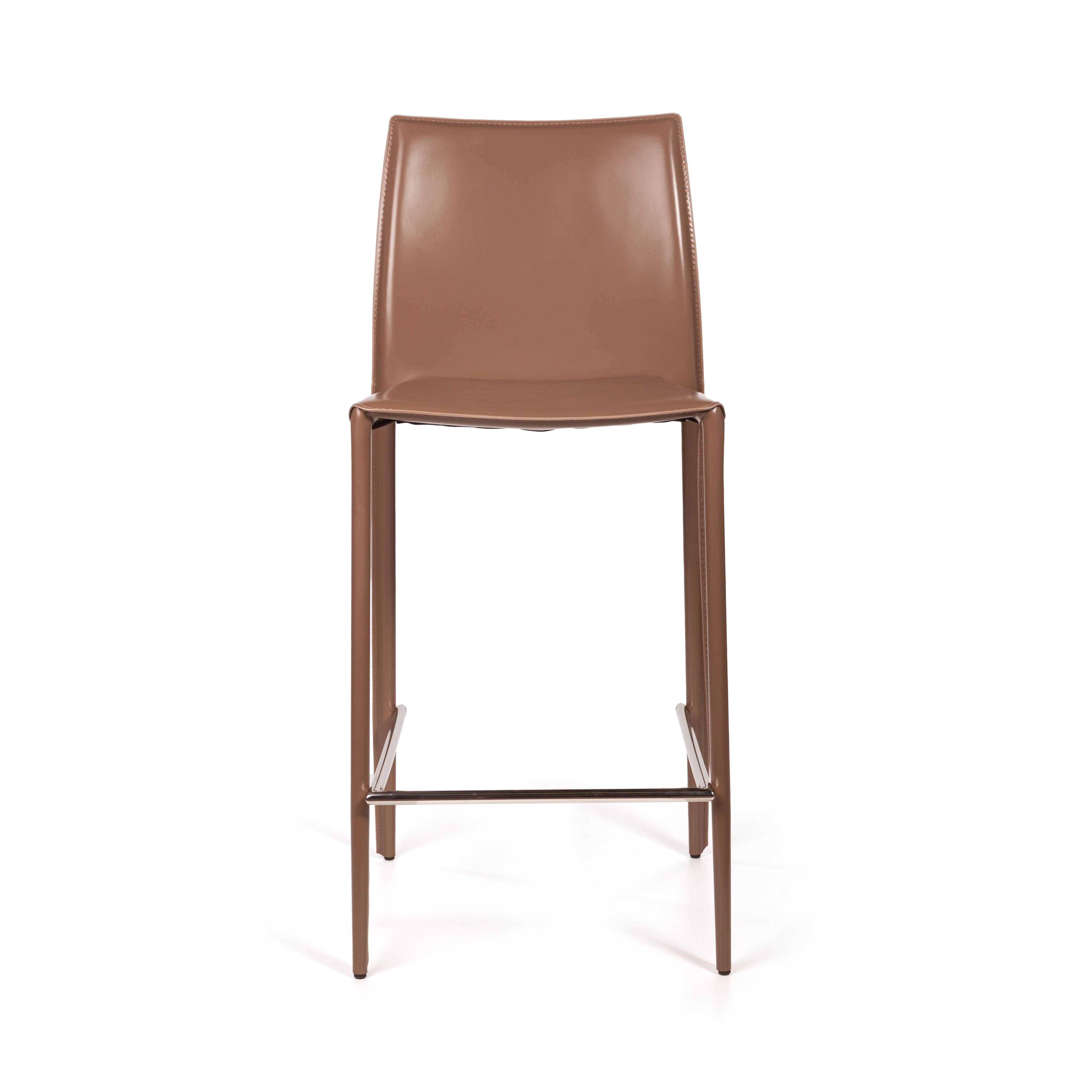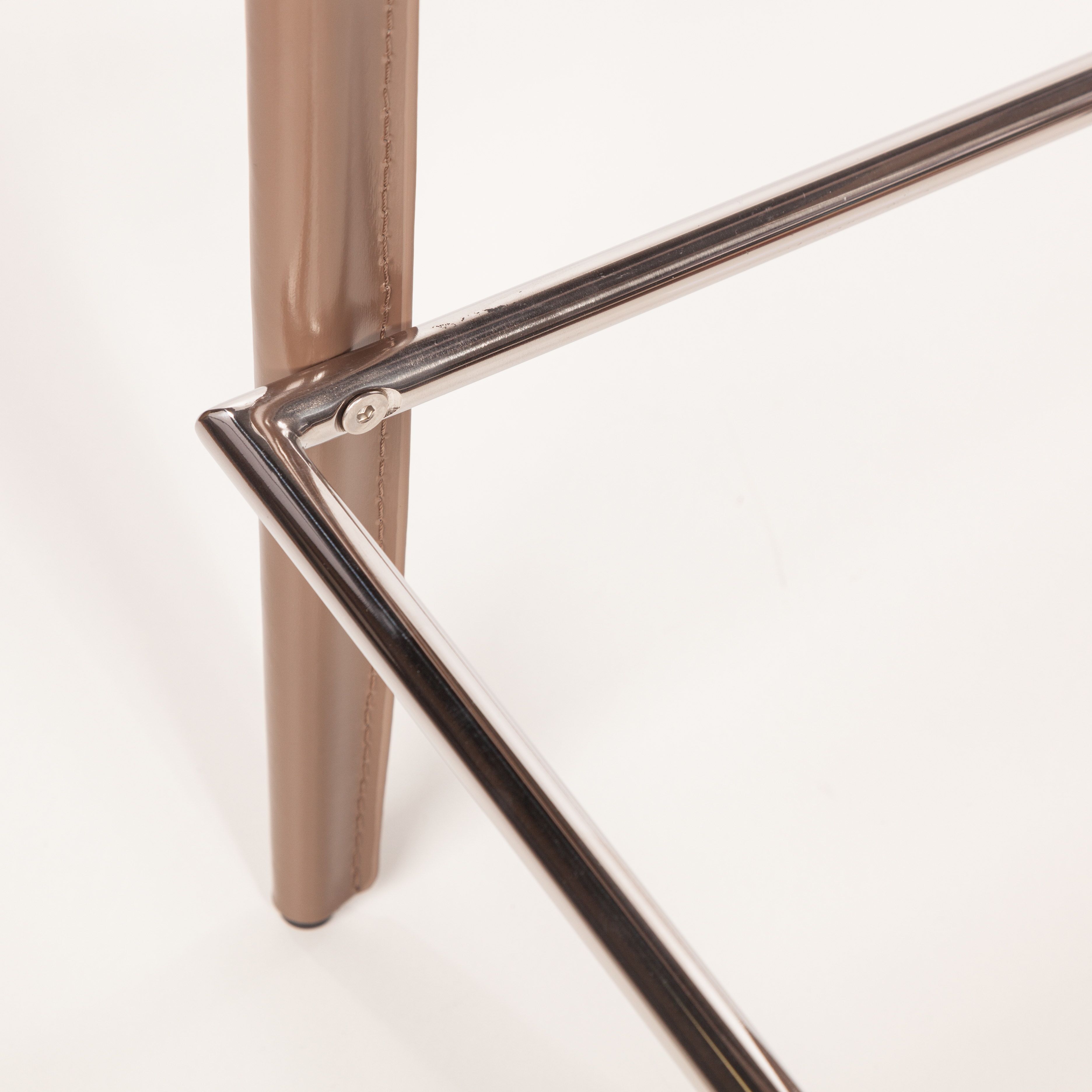Крепкие металлические ножки скрыты под натуральной кожей такого же цвета, как и сам стул, благодаря этому создается лаконичный образ единого целого. На ножках предусмотрены специальные пластиковые накладки, которые придают стулу дополнительную устойчивость и защищают пол от царапин.