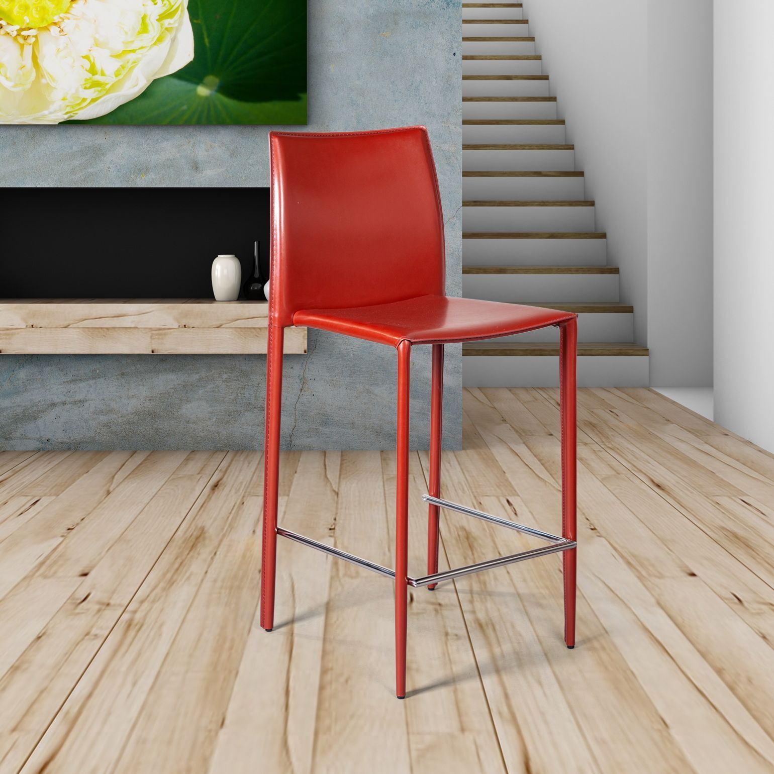 Крепкие металлические ножки скрыты под натуральной кожей такого же цвета, как и сам стул, благодаря этому создается лаконичный образ единого целого. На ножках предусмотрены специальные пластиковые накладки, которые придают стулу дополнительную устойчивость и защищают пол от царапин.
