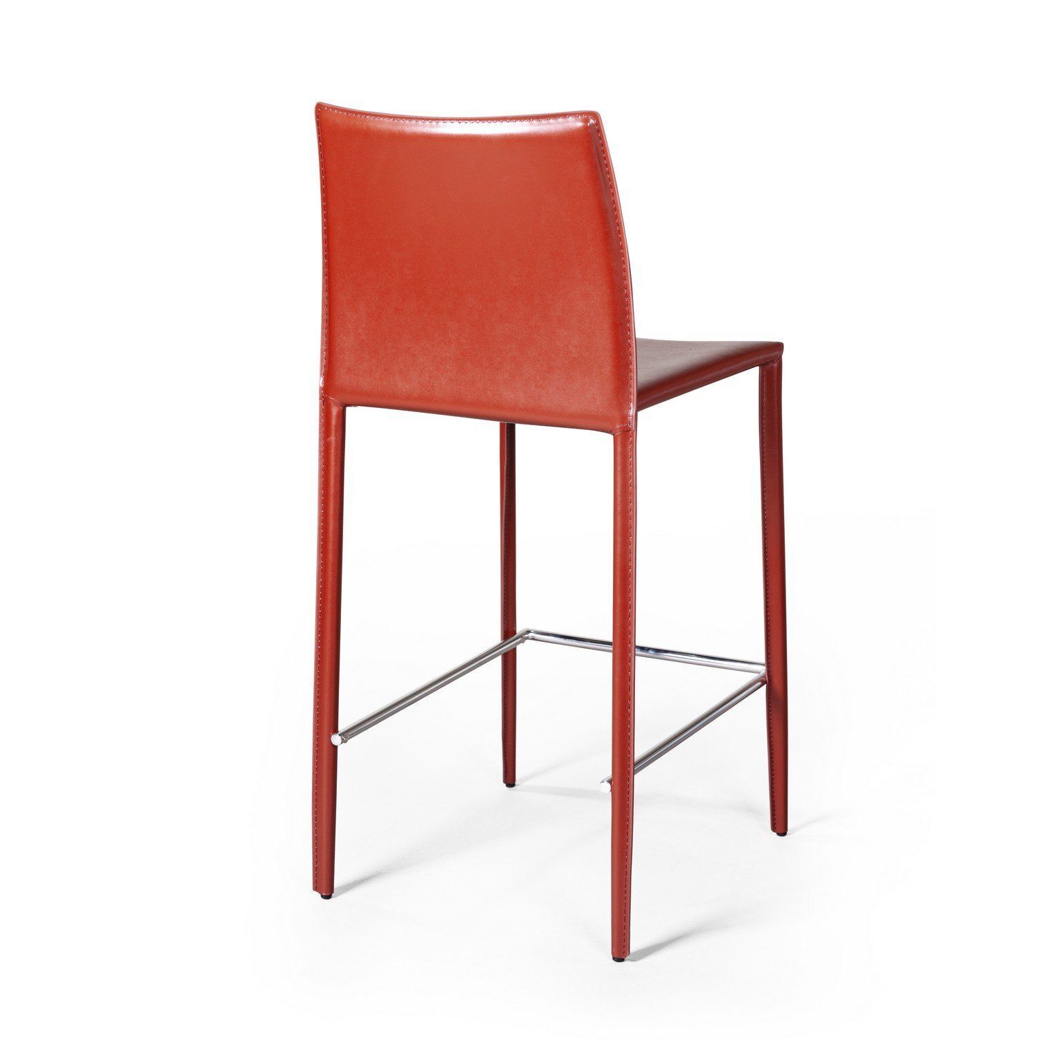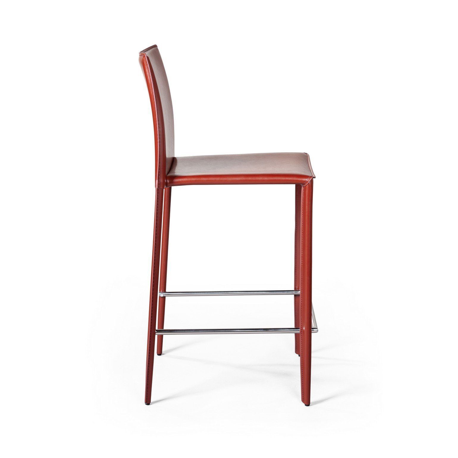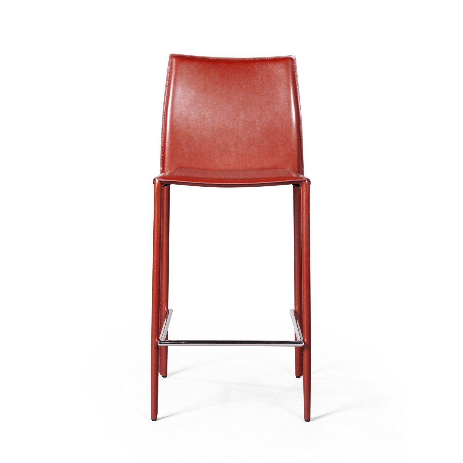 Металлические ножки как продолжение спинки и сиденья обтянуты кожей такого же цвета.