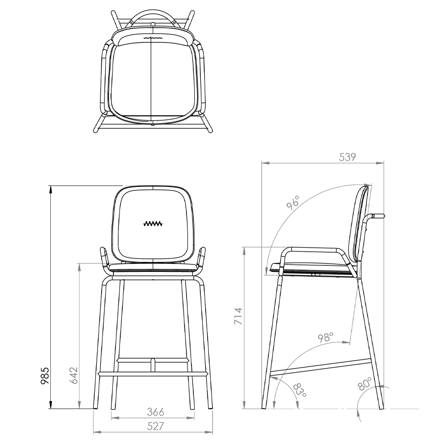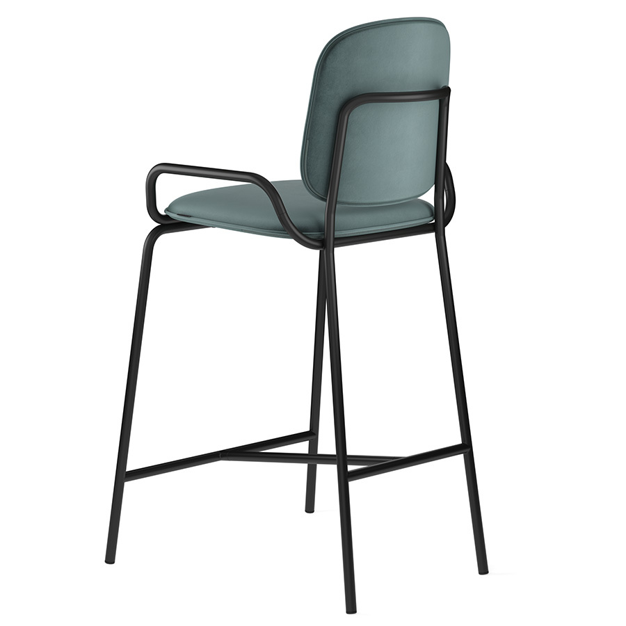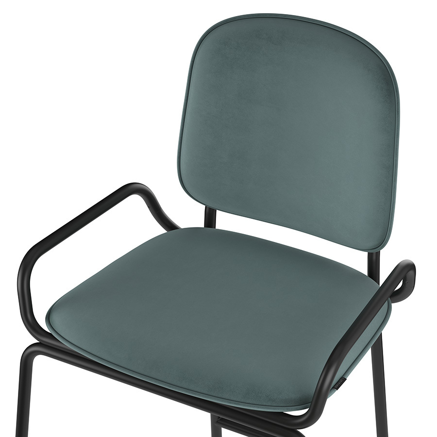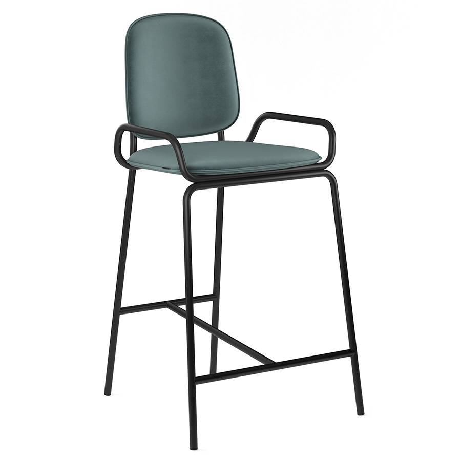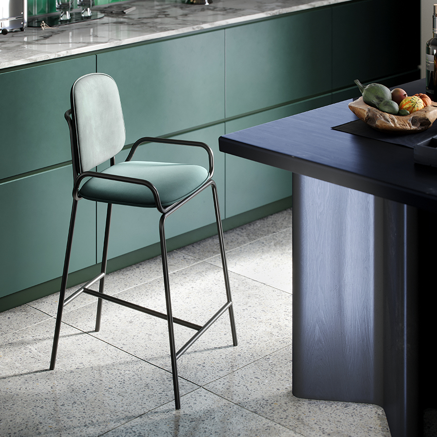 Стул полубарный Double Frame имеет удобную посадку за счет высокой спинки и широкого основания. Ножки плавно переходят в подлокотники и в нижней части соединяются металлической рамой, которая служит подставкой для ног. Такое дизайнерское решение создает дополнительный комфорт во время сидения.