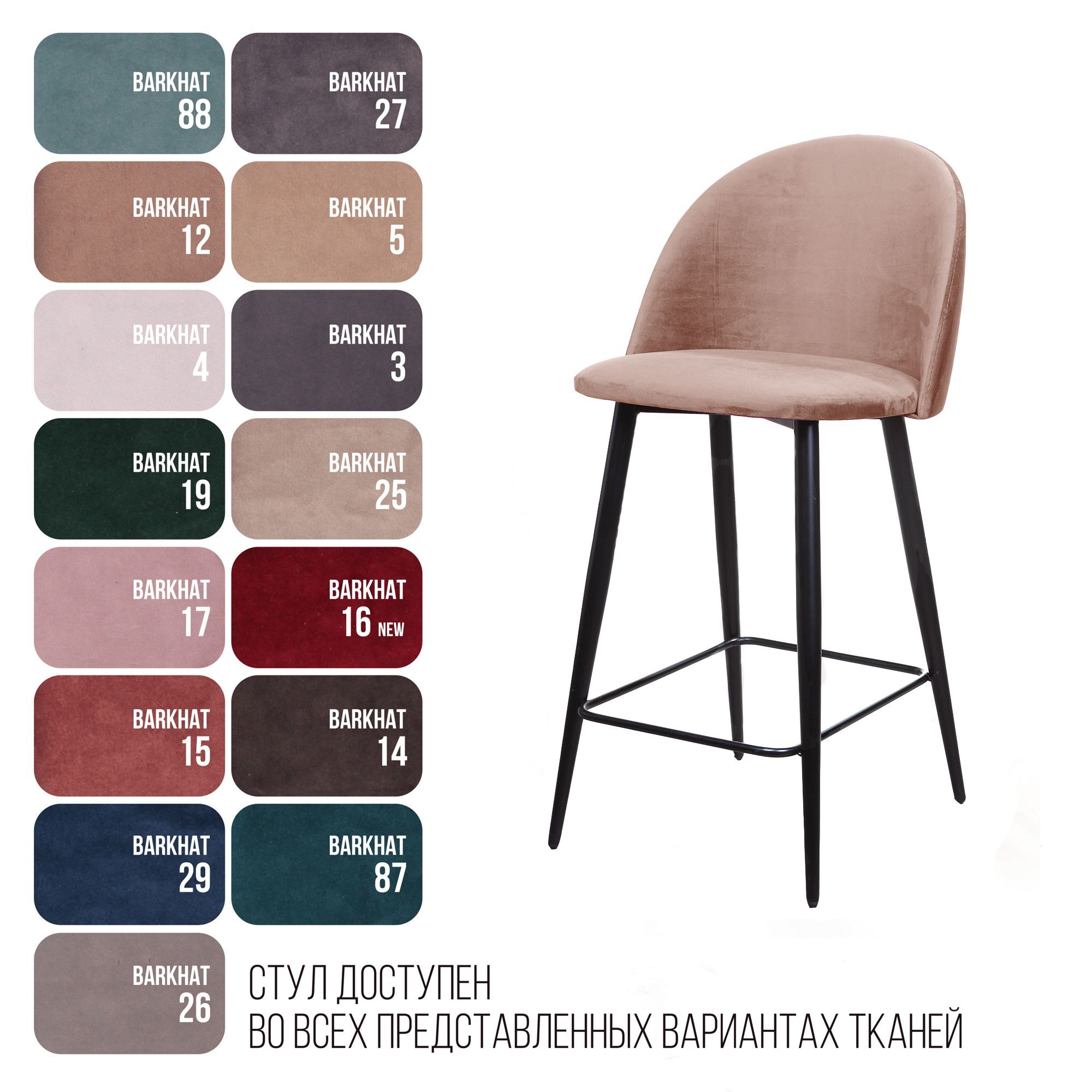 Стул полубарный Thomas, бархат бежевый 5