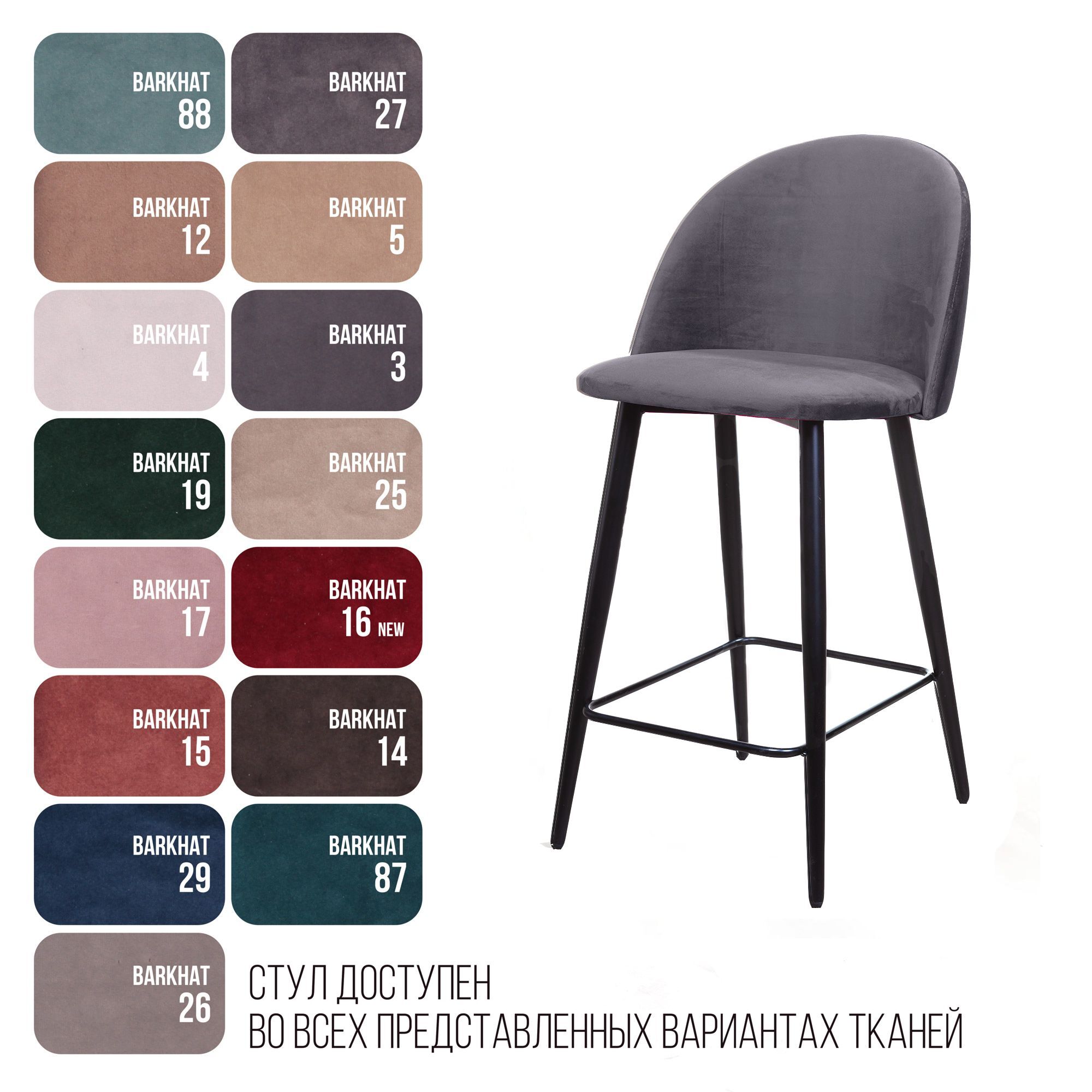 Стул полубарный Thomas, бархат серый 27