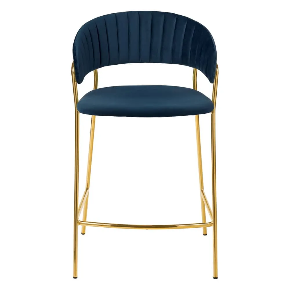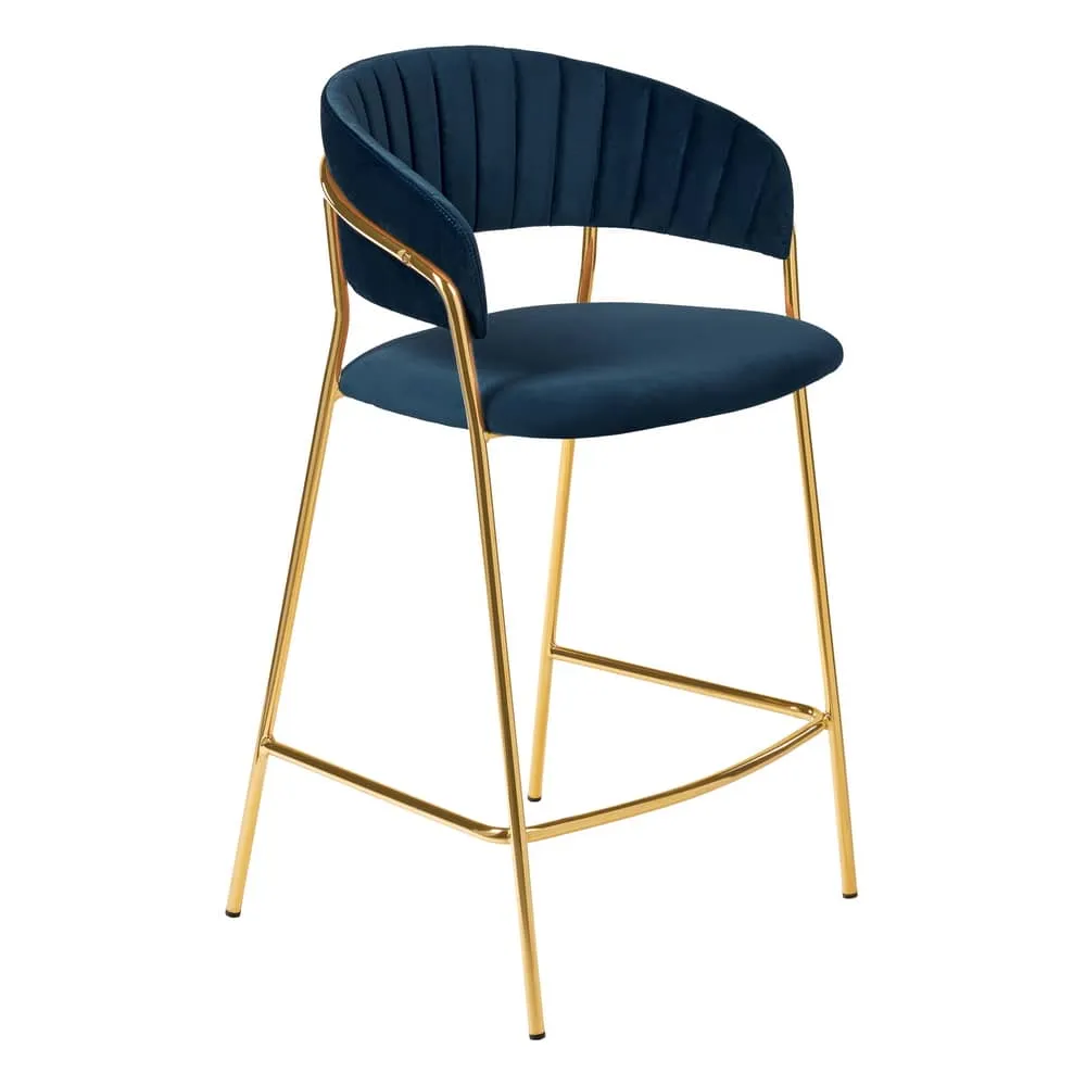 Полубарный стул Turin синий с золотыми ножками повторяет дизайн моделей стульев Turin и Avatar, что позволяет реализовать различные пространства помещения в едином стилевом решении.