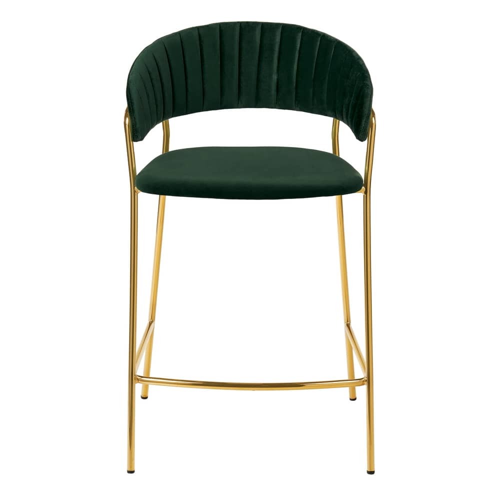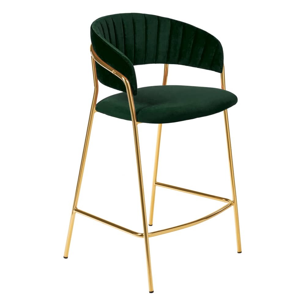 Полубарный стул Turin зелёный с золотыми ножками повторяет дизайн моделей стульев Turin и Avatar, что позволяет реализовать различные пространства помещения в едином стилевом решении.