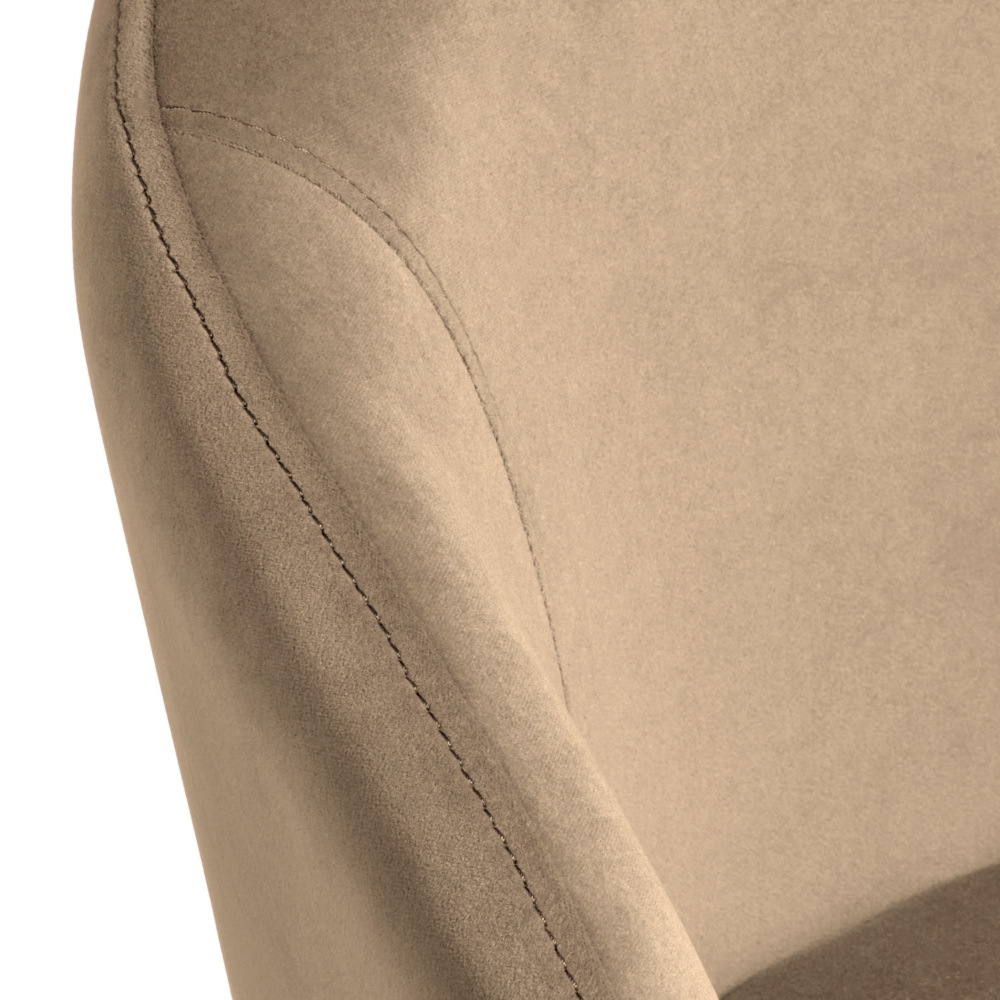 Полукресло Emil имеет широкую изогнутую спинку и мягкое сиденье, которые обеспечивают максимальный уровень комфорта. Ножки выполнены из полированной нержавеющей стали, они не подвержены коррозии и при правильном уходе сохранят свой первоначальный вид 50 лет. Все видимые сварочные швы на ножках тщательно отполированы. Напыление нитрид титана, обеспечивает ножкам натуральный цвет золота. Велюровая обивка обеспечивает невероятную мягкость и красивый глубокий цвет, износостойкость 100 000 циклов.