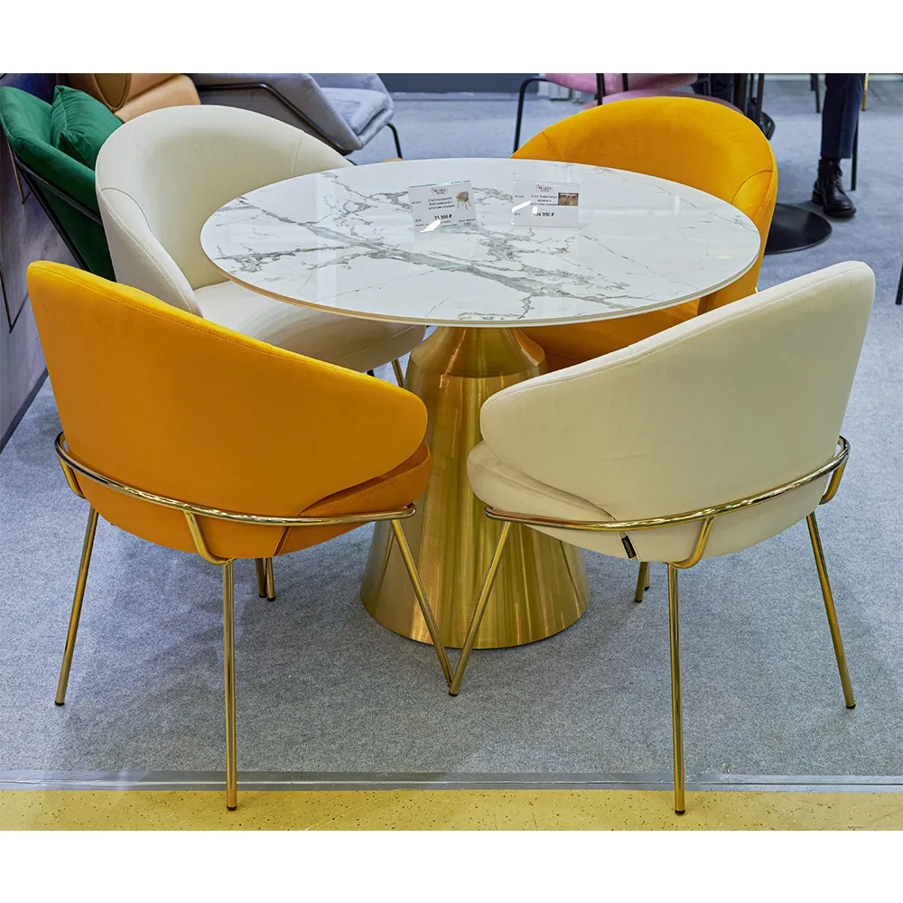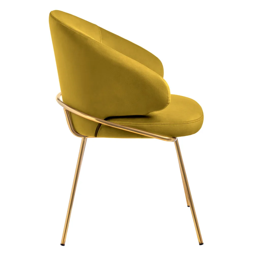 Полукресло Emil имеет широкую изогнутую спинку и мягкое сиденье, которые обеспечивают максимальный уровень комфорта. Ножки выполнены из полированной нержавеющей стали, они не подвержены коррозии и при правильном уходе сохранят свой первоначальный вид 50 лет. Все видимые сварочные швы на ножках тщательно отполированы. Напыление нитрид титана, обеспечивает ножкам натуральный цвет золота. Велюровая обивка обеспечивает невероятную мягкость и красивый глубокий цвет, износостойкость 100 000 циклов.