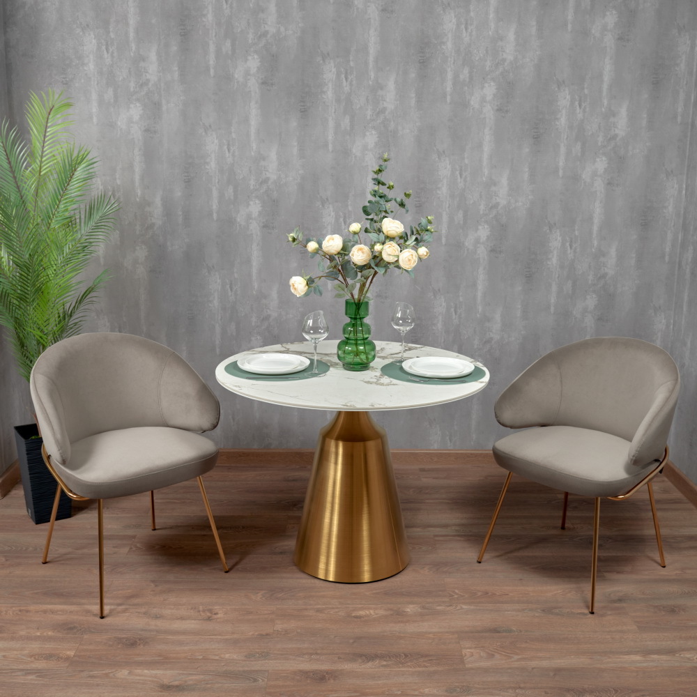 Полукресло Emil имеет широкую изогнутую спинку и мягкое сиденье, которые обеспечивают максимальный уровень комфорта. Ножки выполнены из полированной нержавеющей стали, они не подвержены коррозии и при правильном уходе сохранят свой первоначальный вид 50 лет. Все видимые сварочные швы на ножках тщательно отполированы. Напыление нитрид титана, обеспечивает ножкам натуральный цвет золота. Велюровая обивка обеспечивает невероятную мягкость и красивый глубокий цвет, износостойкость 100 000 циклов.