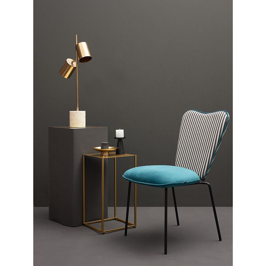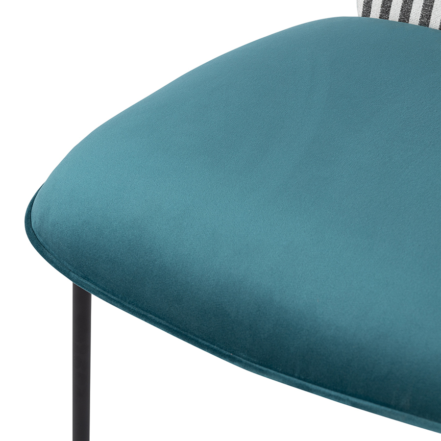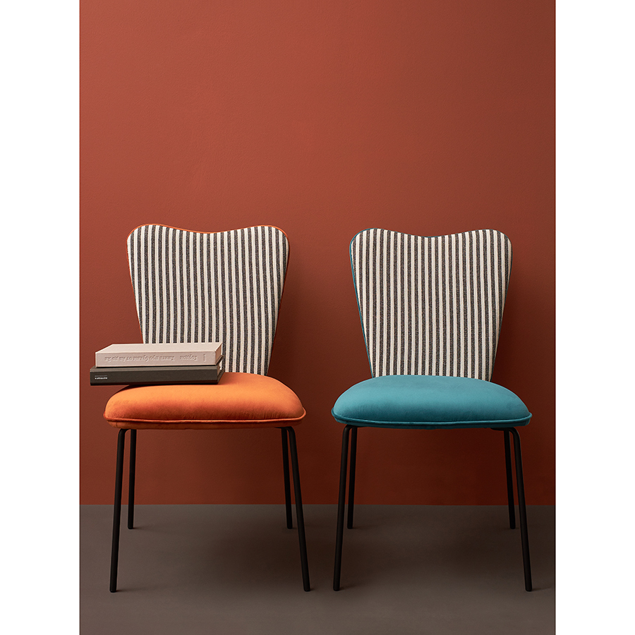 - Спинка необычной формы с полосатым принтом привносит в дизайн интересный акцент.