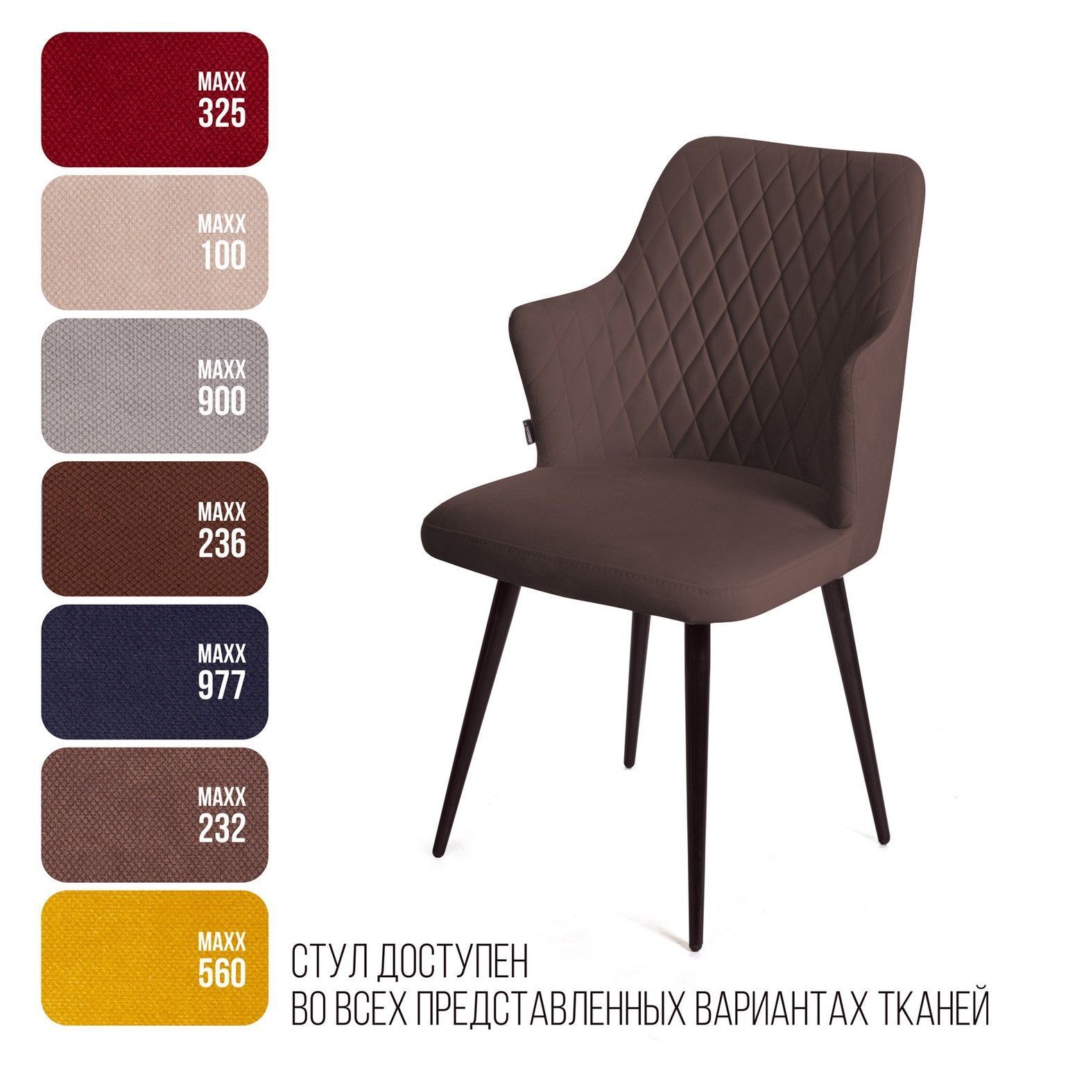 Металлические опоры черного матового цвета в форме «конус». На опорах предусмотрены защитные пластиковые накладки, которые придают стулу дополнительную устойчивость и защищают пол от царапин.