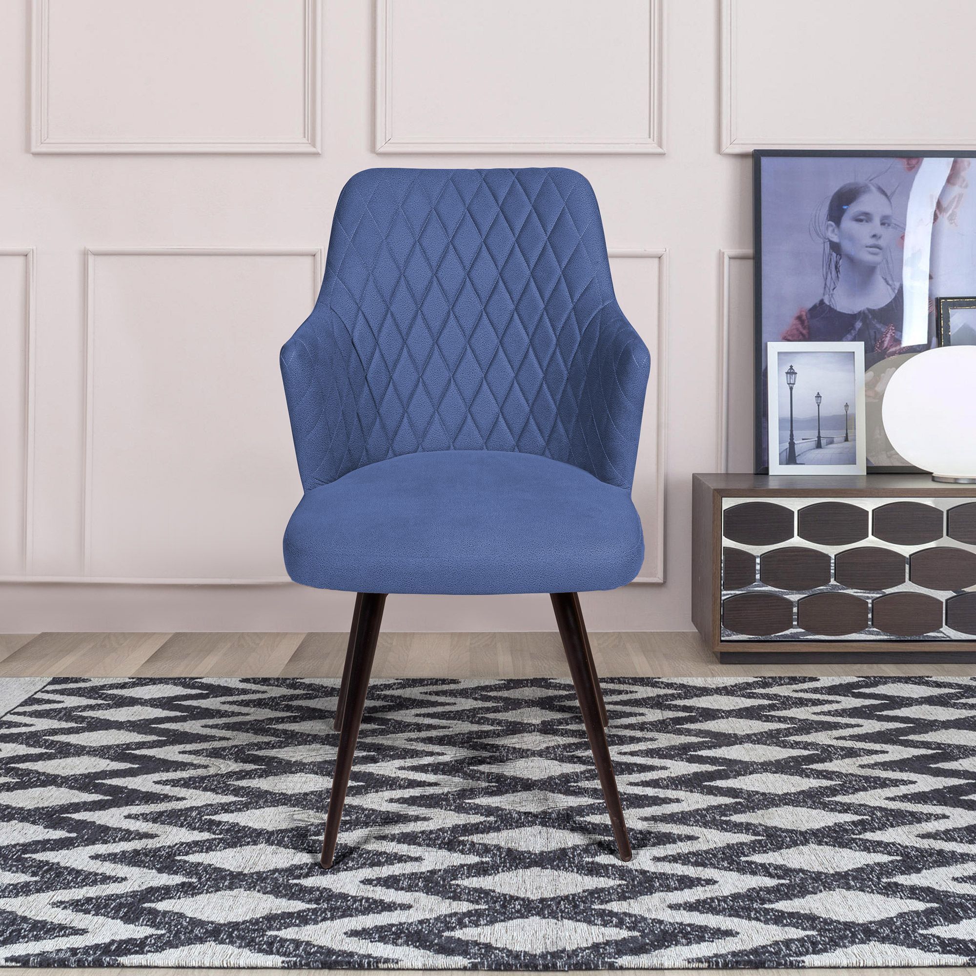 Стул поворотный на 90 градусов, функция возврата, антишум Hunt ромб, бархат синий 29 / чёрный конус