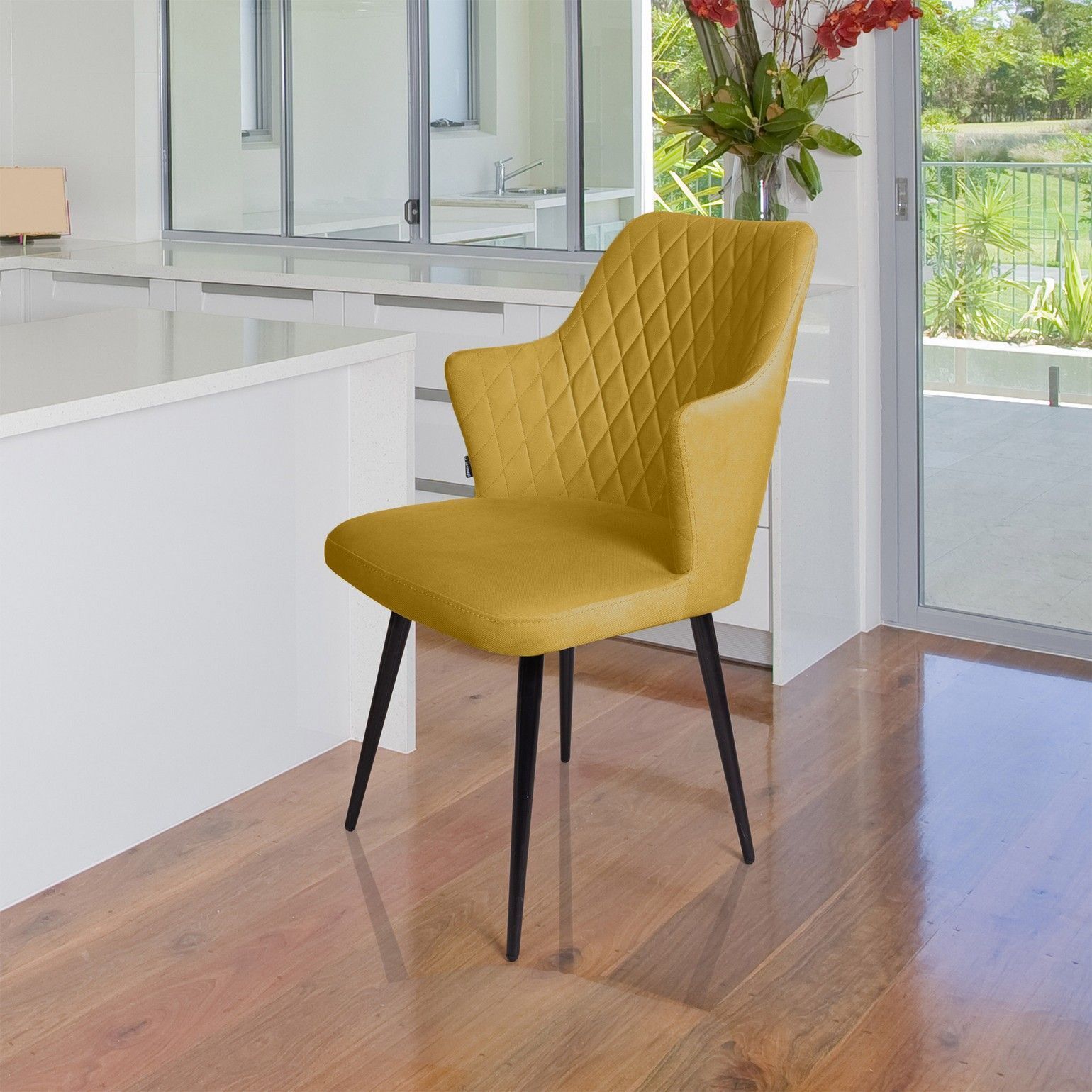 Дизайнерский стул «Hunt» c отделочной строчкой в виде ромба и острыми подлокотниками выглядит стильно и эффектно. Поворотный механизм на 90 градусов совершит мягкий бесшумный поворот и самостоятельно вернется обратно в исходное положение, благодаря функции «памяти».