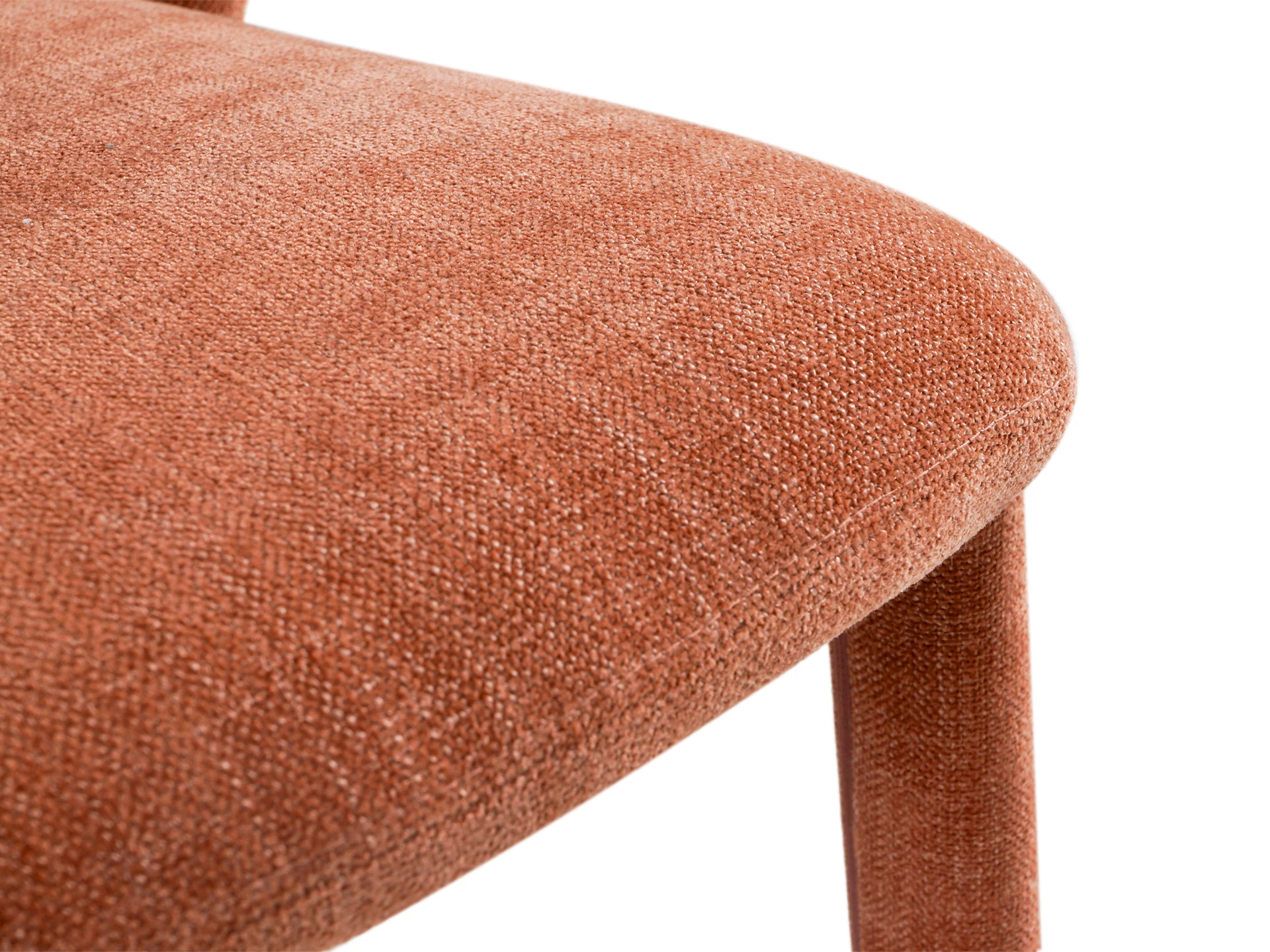 За счет «просвета» в спинке модель смотрится легко и воздушно. Радиальные углы — для удобства и безопасности. Стул полностью обит износостойким шениллом, что создаёт единый цельный образ. Материал плотный, практичный, обладает приятной фактурой, напоминает вельвет. Смотрится тепло и уютно. Стул Rihom гармонично впишется в обеденную зону, кухню, гостиную и подружится со столом любой формы.
