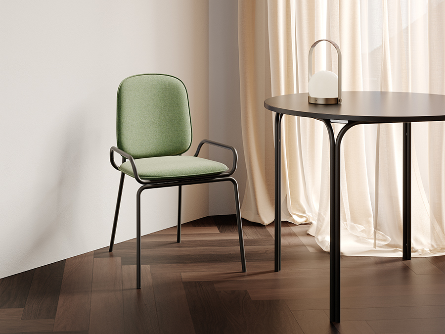 Стул Double Frame имеет удобную посадку за счет высокой спинки и широкого сиденья. Отсутствие острых углов создает легкий, гармоничный силуэт.