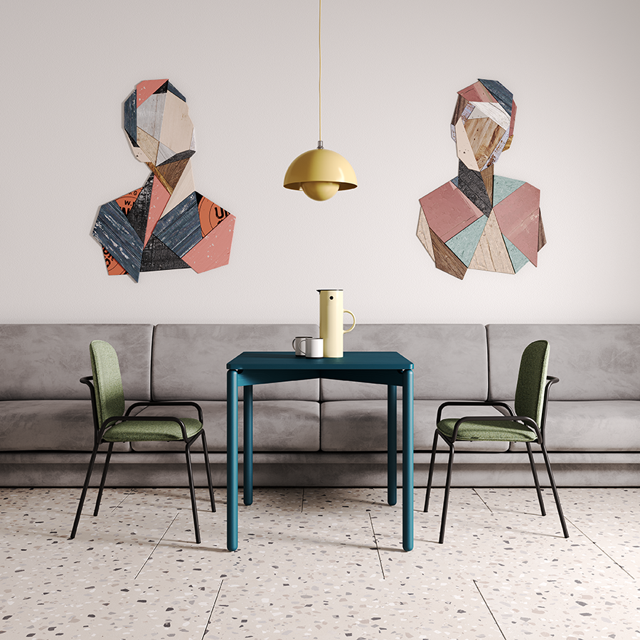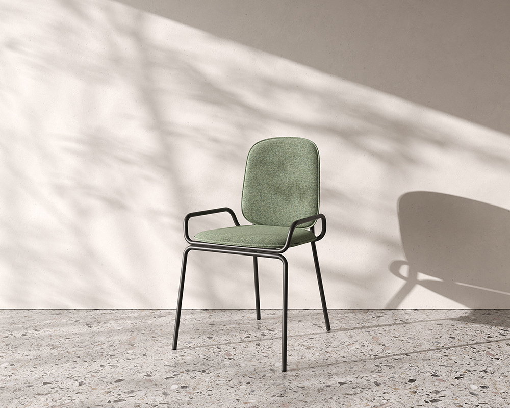 Стальной каркас с порошковым покрытием делает конструкцию прочной и надежной, а меланжевая ткань обивки обладает высокими показателями износостойкости. Используемый в качестве наполнителя пенополиуретан отличается комфортной плотностью и жесткостью. Все материалы отвечают высоким стандартам практичности, долговечности и экологической безопасности.