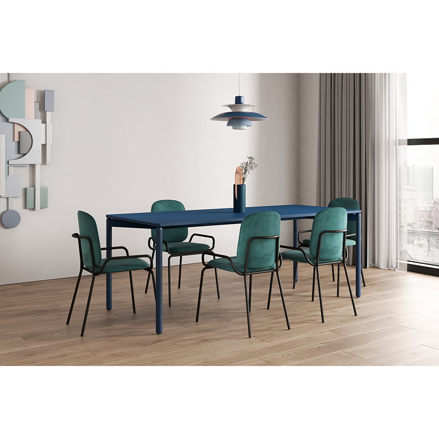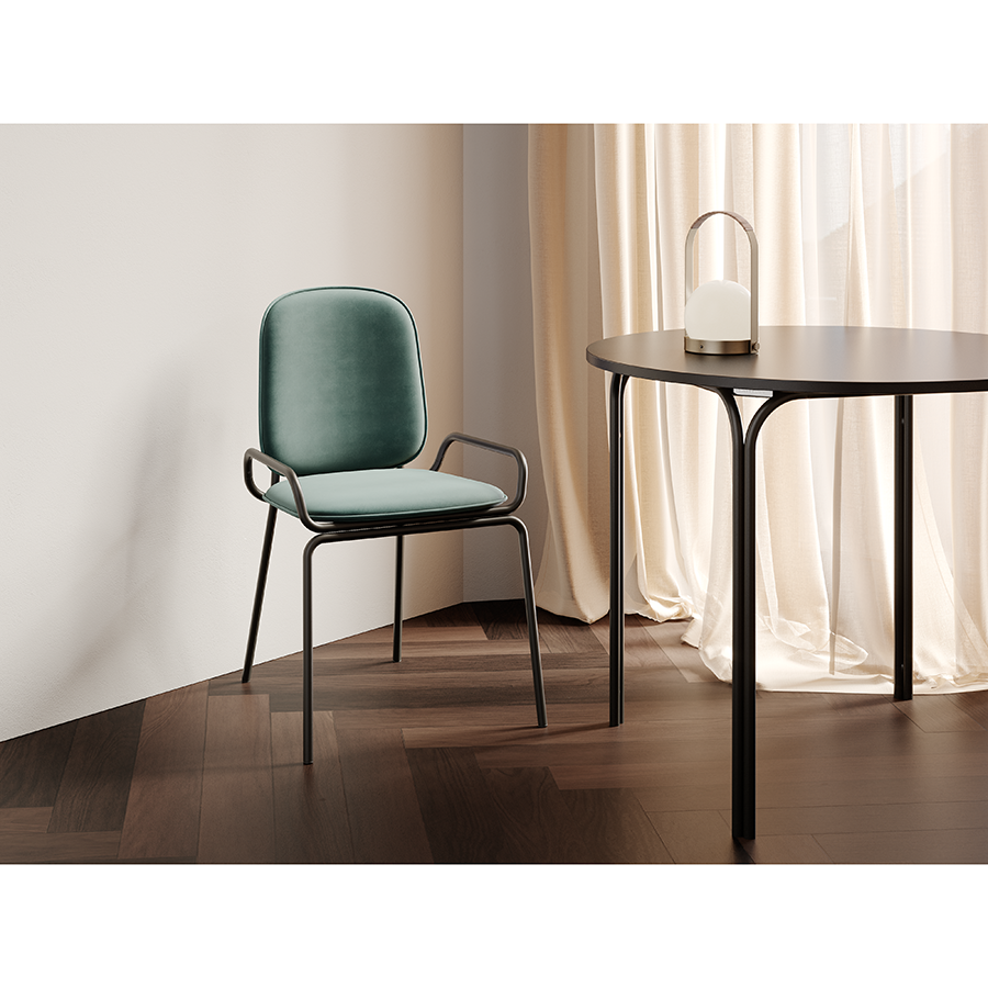 Стальной каркас с порошковым покрытием делает конструкцию прочной и надежной, а мягкий велюр с бархатистой текстурой обеспечивает тактильный комфорт. Ткань обивки обладает высокими показателями износостойкости. Используемый в качестве наполнителя пенополиуретан отличается комфортной плотностью и жесткостью.