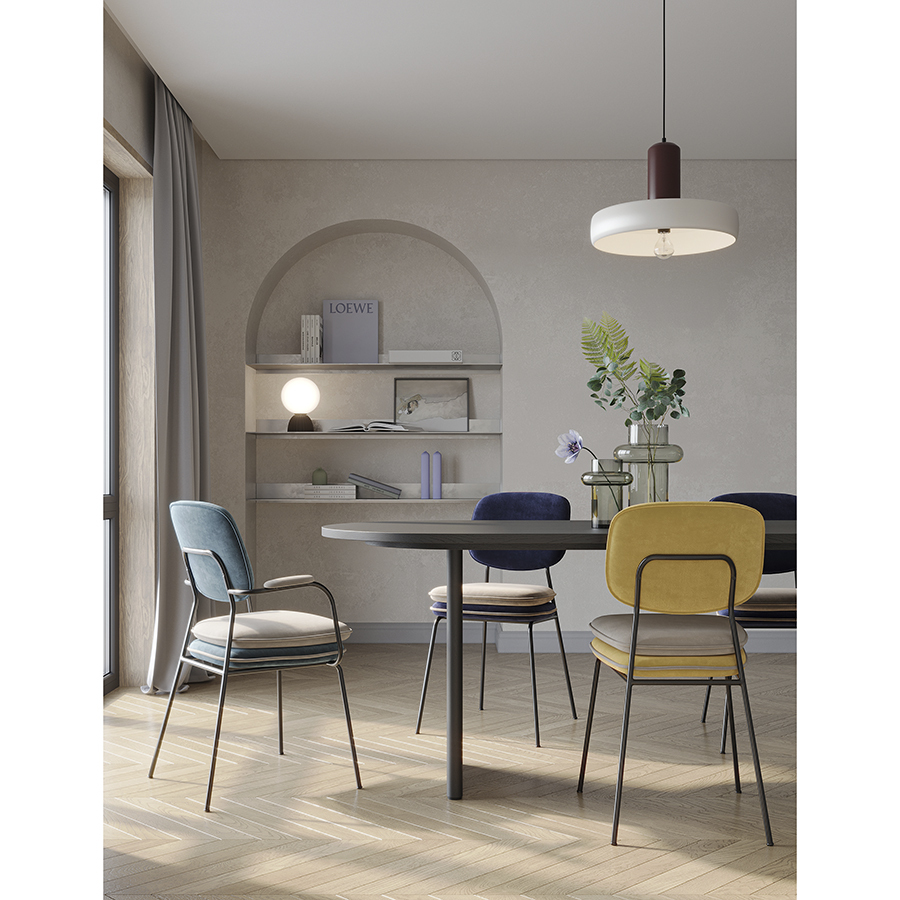 Стул Pea с контрастным кантом и мягкой обивкой из бархатистого велюра станет настоящим украшением интерьера и идеальным выбором для ценителей качественной и элегантной мебели.