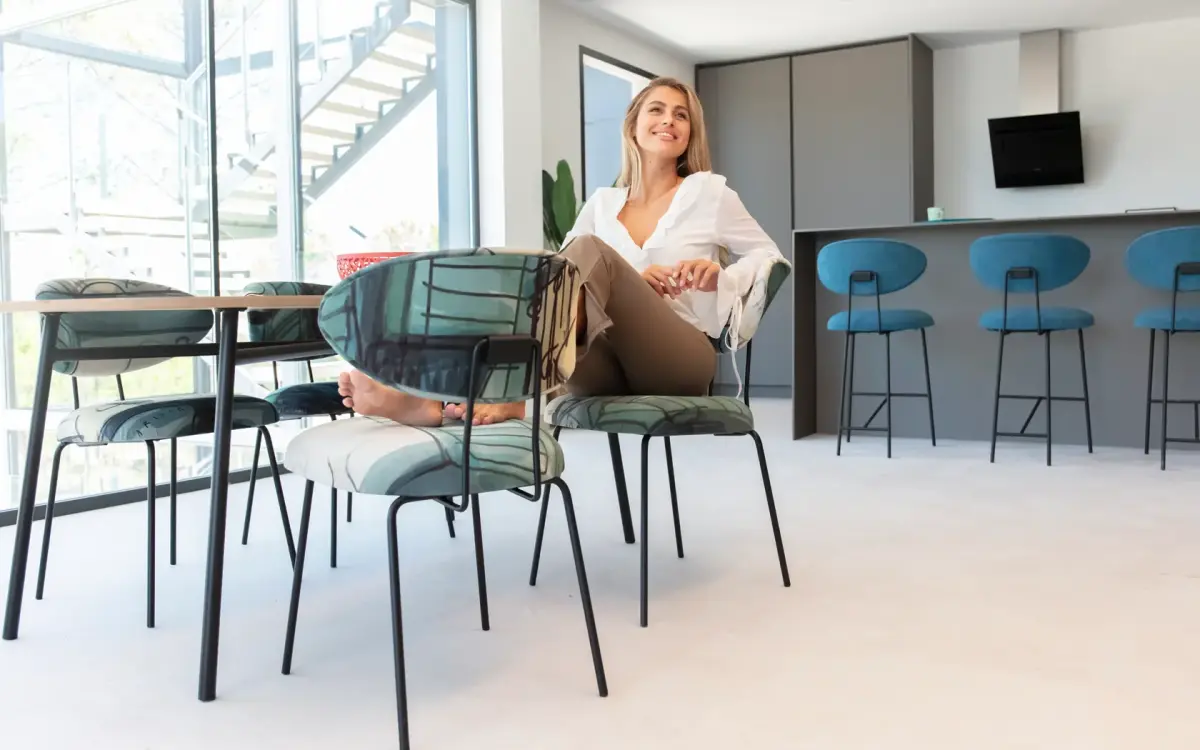 Закруглённое сиденье придаёт ему более современный вид, позволяя адаптировать его к различным интерьерам. Он подходит как для жилых помещений, так и для общественных помещений, обеспечивая непревзойдённый комфорт благодаря регулируемой спинке.