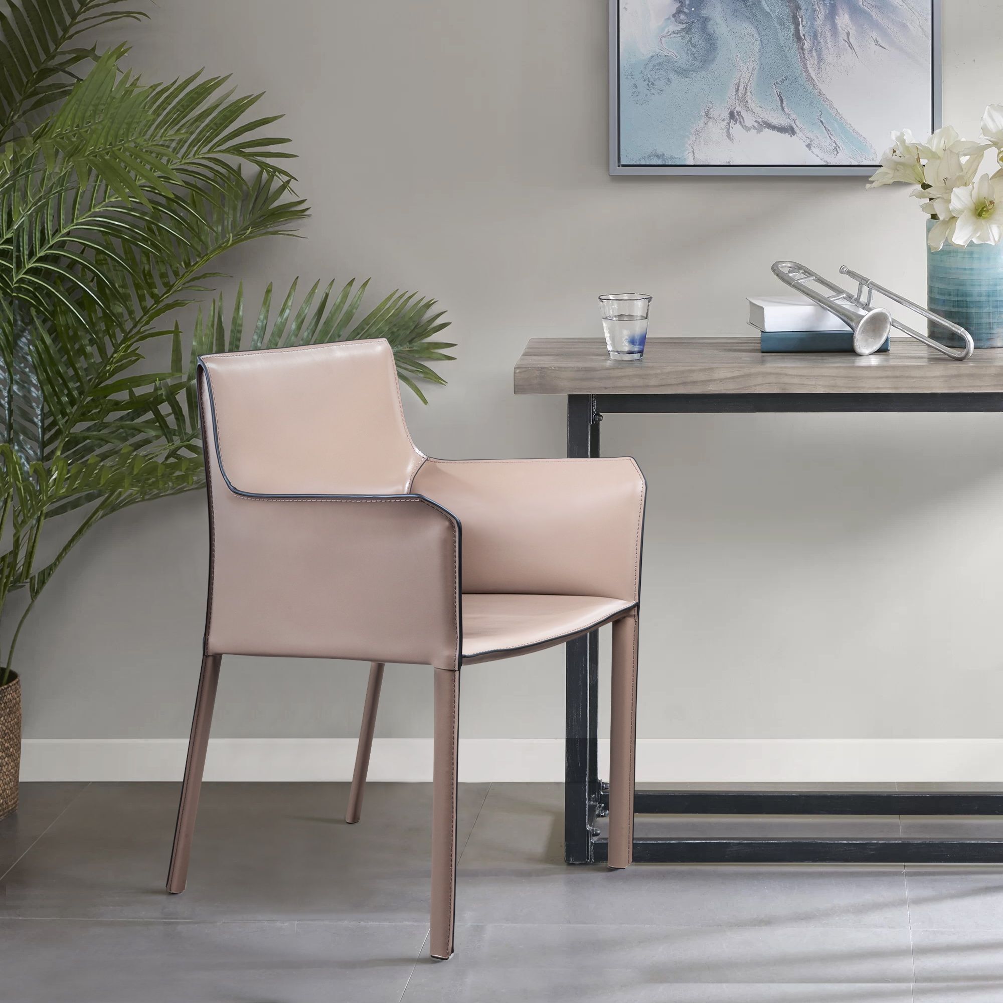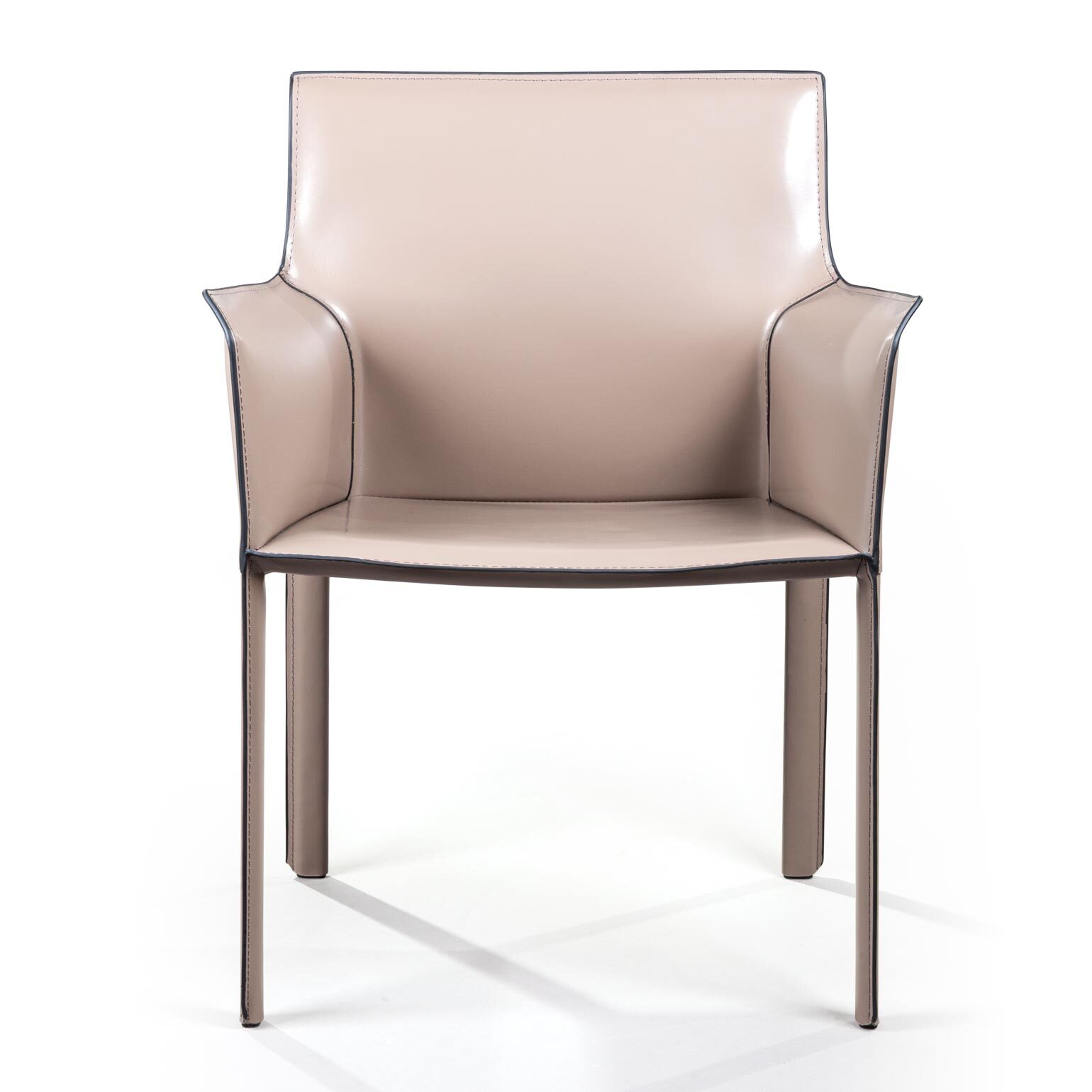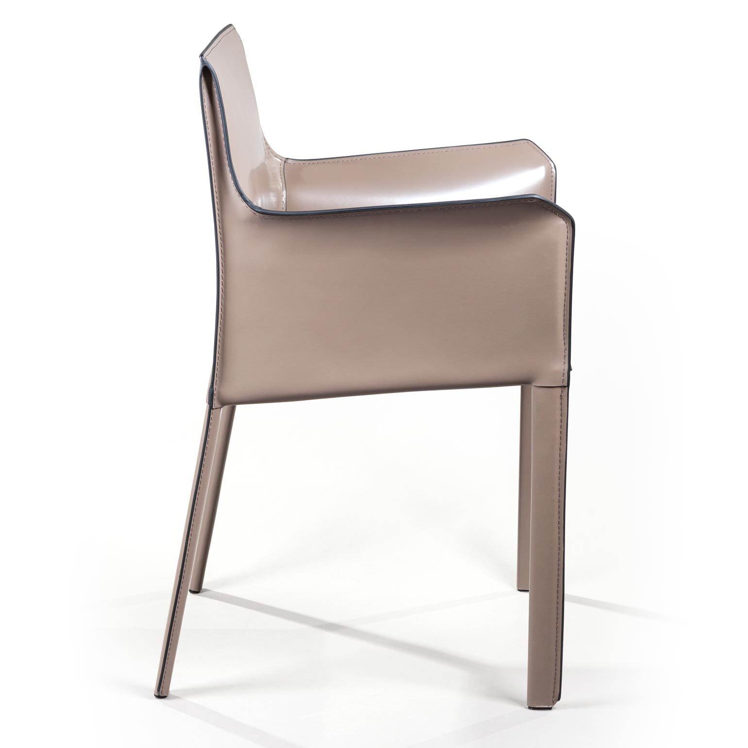 Кожаный стулBarrie всегда будет выгодно смотреться в интерьере, подчеркивая вкус и статус владельца.Модель отличается привлекательным внешним видом и практичностью. Стиль, в котором он выполнен, можно охарактеризовать как мягкая геометрия! Прямоугольное сиденье, высокая спинка с небольшим уклоном назад делают стул невероятно удобным. Высокие подлокотники в дизайне стула как дополнительная опция для еще большего комфорта. Главная особенность модели – плавный переход спинки в сиденье, образующий мягкий изгиб. Ножки обеденного стула, также обтянутые кожей, создают единый образ и являются визуальным продолжением сиденья.