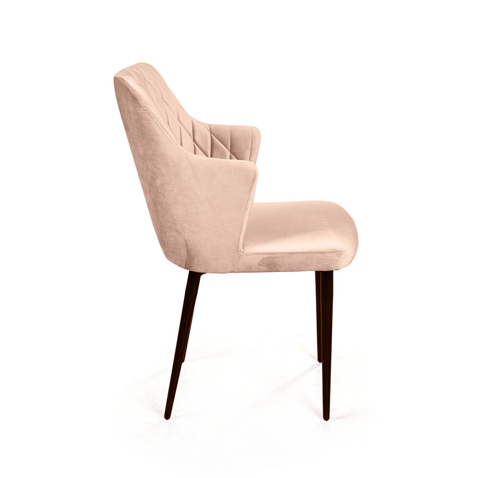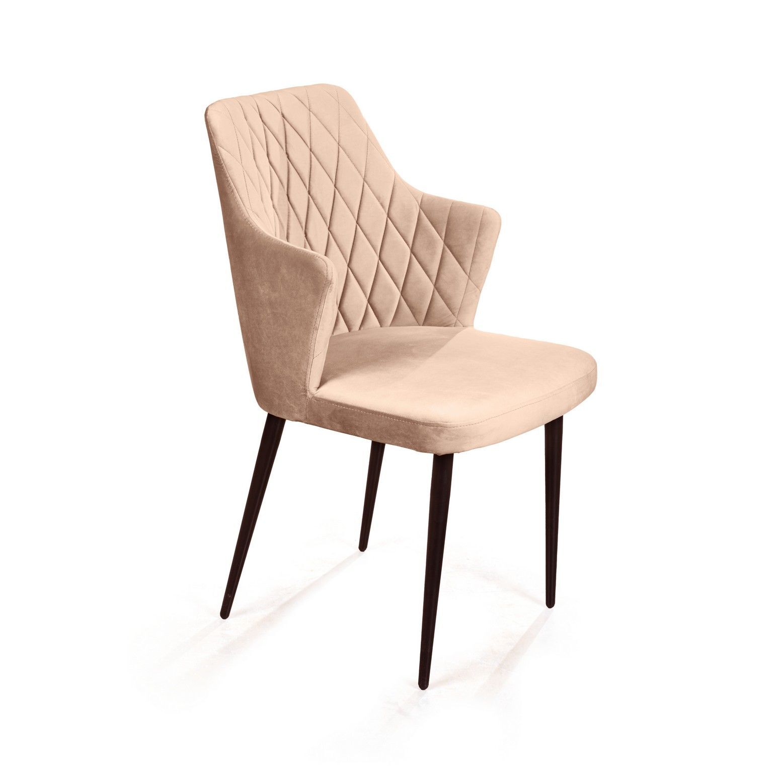 Стул с подлокотниками Hunt ромб, бархат бежевый 5 / чёрный конус