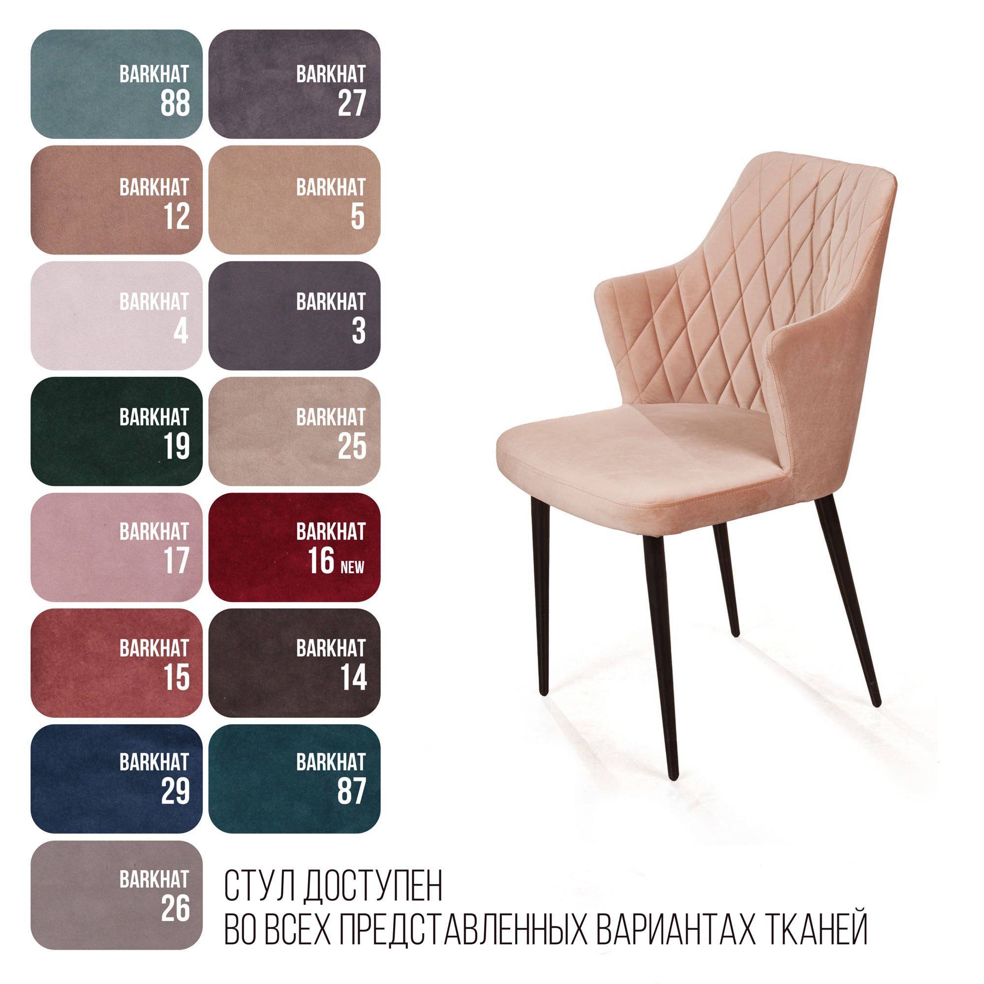 strong*Оттенок может выглядеть по-разному в зависимости от направления ворса./strong Дизайнерский стул «Hunt» c отделочной строчкой в виде ромба и острыми подлокотниками выглядит стильно и эффектно. Каркас Прочный металлический каркас обеспечит продолжительный срок службы. Наполнение В качестве наполнителя используется формованный высокопрочный пенополиуретан. При ежедневной эксплуатации на протяжении длительного времени он сохранит первоначальную форму. Данное наполнение - гарантия продолжительного срока службы изделия что особенно важно для коммерческого использования. Опоры Металлические опоры черного матового цвета в форме «конус». На опорах предусмотрены защитные пластиковые накладки, которые придают стулу дополнительную устойчивость и защищают пол от царапин. Гарантия Тщательная проверка качества изделий осуществляется на всех этапах производства: от подбора материалов и комплектующих до проверки готового изделия перед отправкой. На все изделия Top concept мы предоставляем гарантию 18 месяцев.
