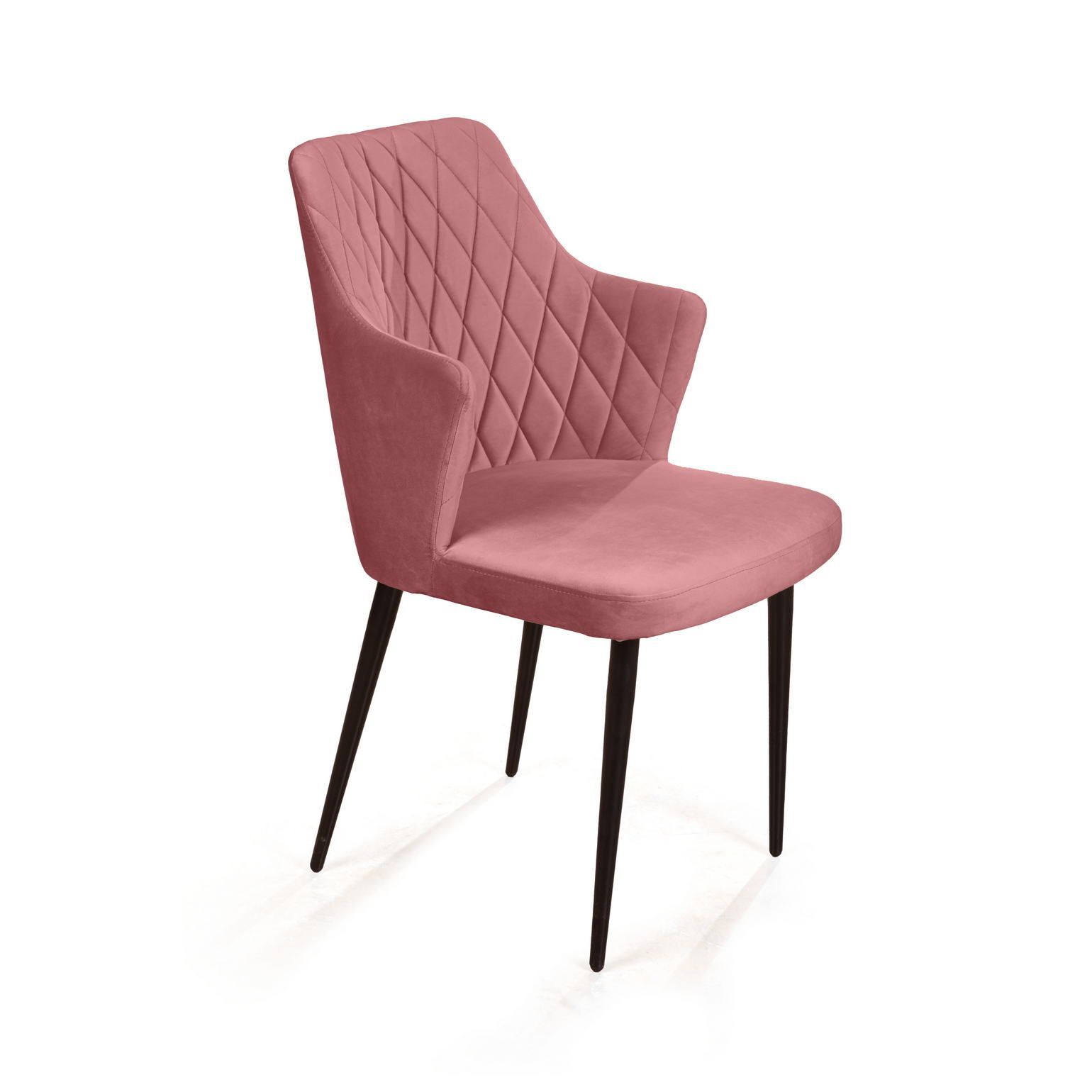 Стул с подлокотниками Hunt ромб, бархат пудровый 15 / чёрный конус