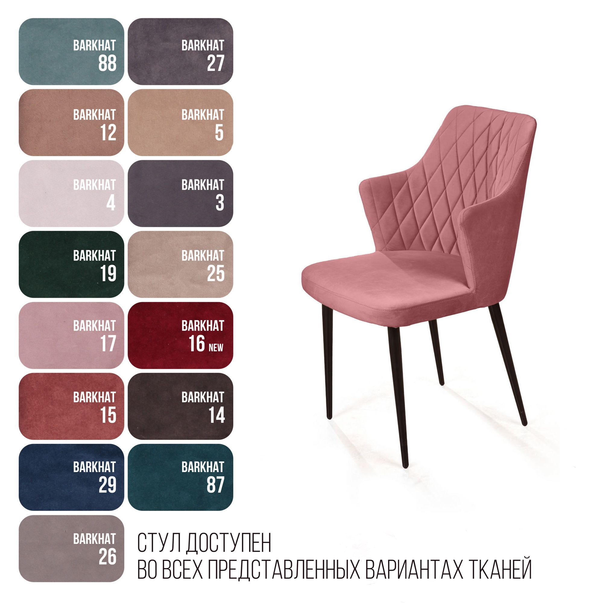 strong*Оттенок может выглядеть по-разному в зависимости от направления ворса./strong Дизайнерский стул «Hunt» c отделочной строчкой в виде ромба и острыми подлокотниками выглядит стильно и эффектно. Каркас Прочный металлический каркас обеспечит продолжительный срок службы. Наполнение В качестве наполнителя используется формованный высокопрочный пенополиуретан. При ежедневной эксплуатации на протяжении длительного времени он сохранит первоначальную форму. Данное наполнение - гарантия продолжительного срока службы изделия что особенно важно для коммерческого использования. Опоры Металлические опоры черного матового цвета в форме «конус». На опорах предусмотрены защитные пластиковые накладки, которые придают стулу дополнительную устойчивость и защищают пол от царапин. Гарантия Тщательная проверка качества изделий осуществляется на всех этапах производства: от подбора материалов и комплектующих до проверки готового изделия перед отправкой. На все изделия Top concept мы предоставляем гарантию 18 месяцев.