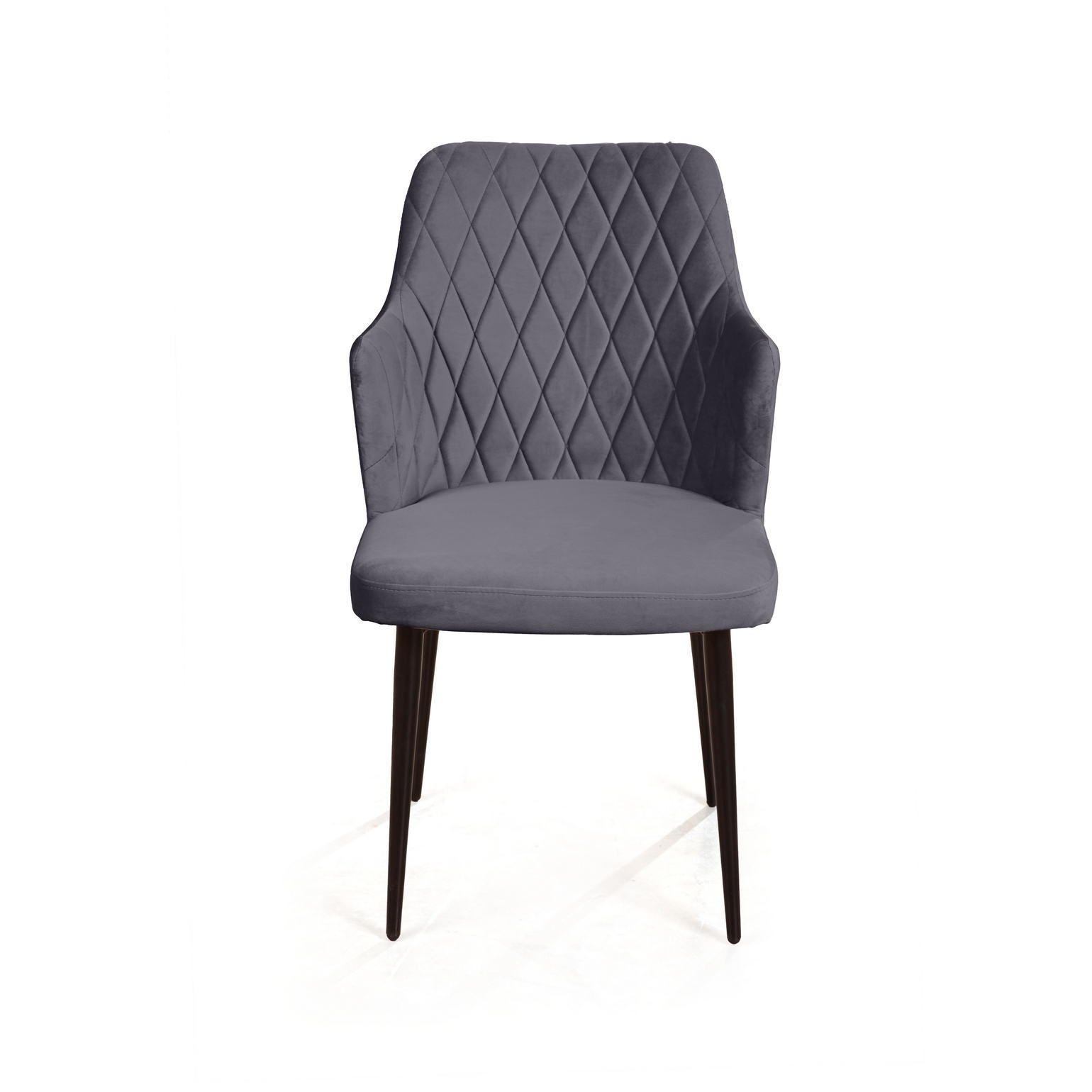 Стул с подлокотниками Hunt ромб, бархат серый 27 / чёрный конус