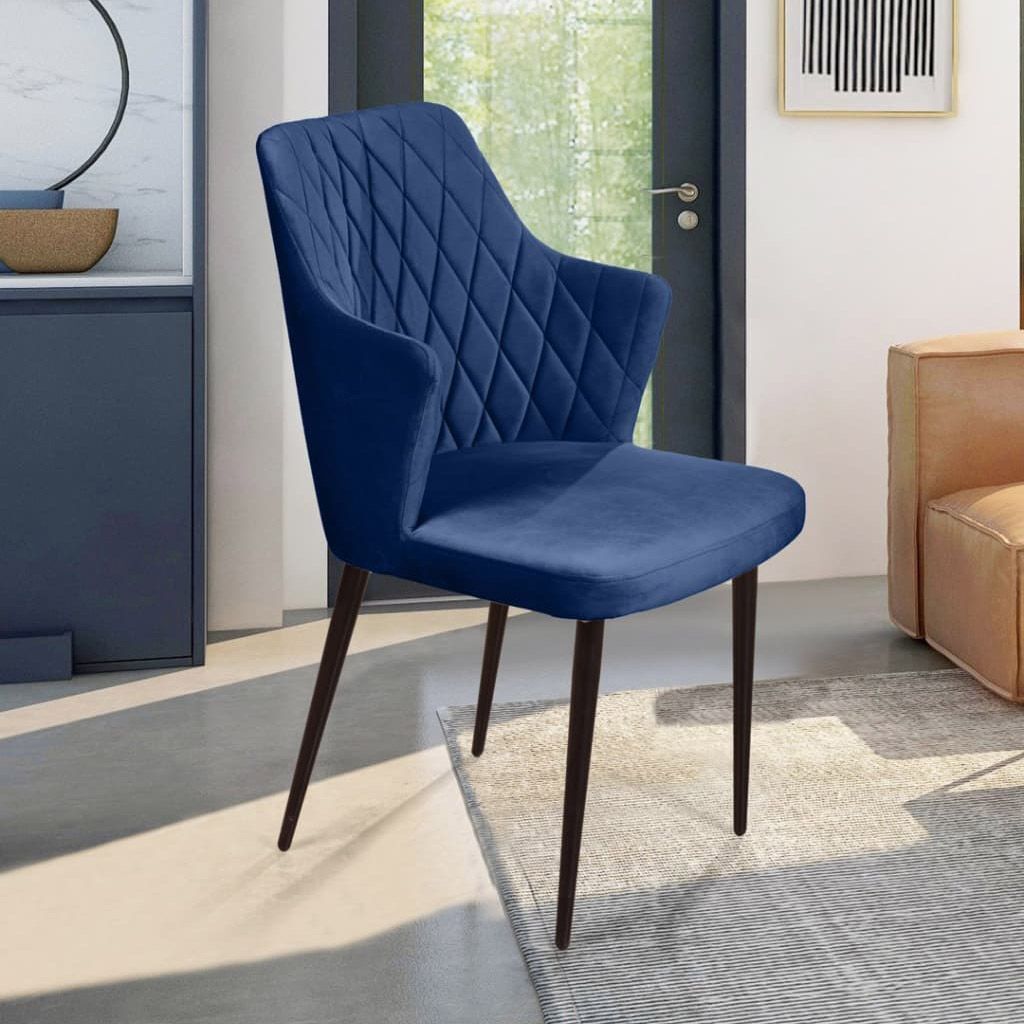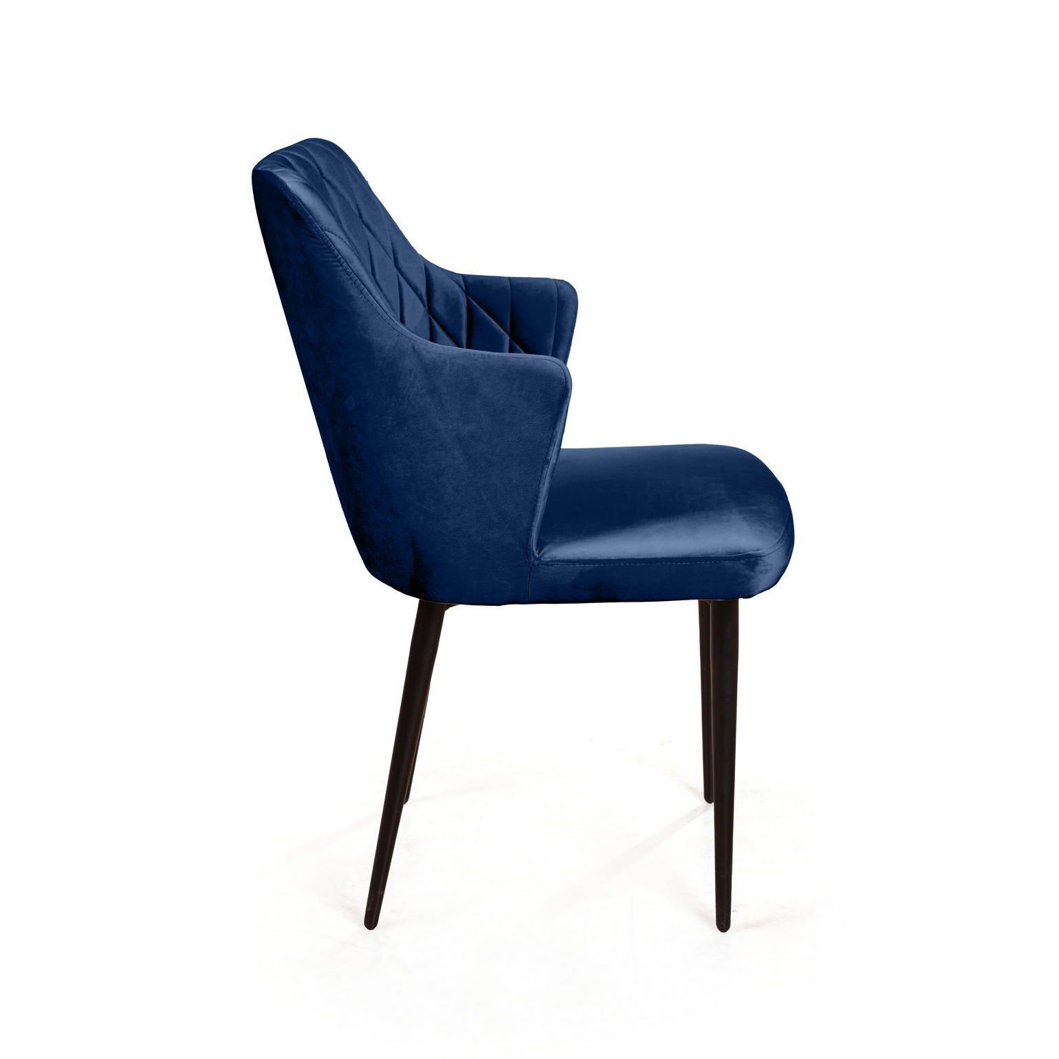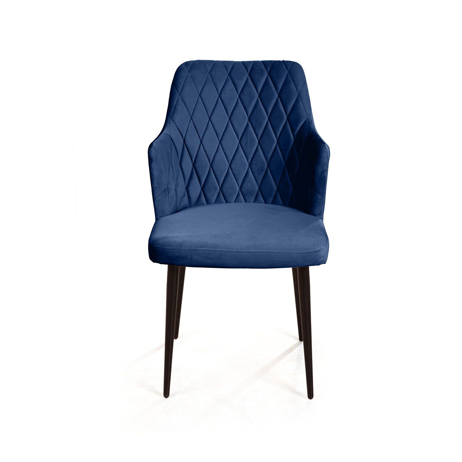 Стул с подлокотниками Hunt ромб, бархат синий 29 / чёрный конус