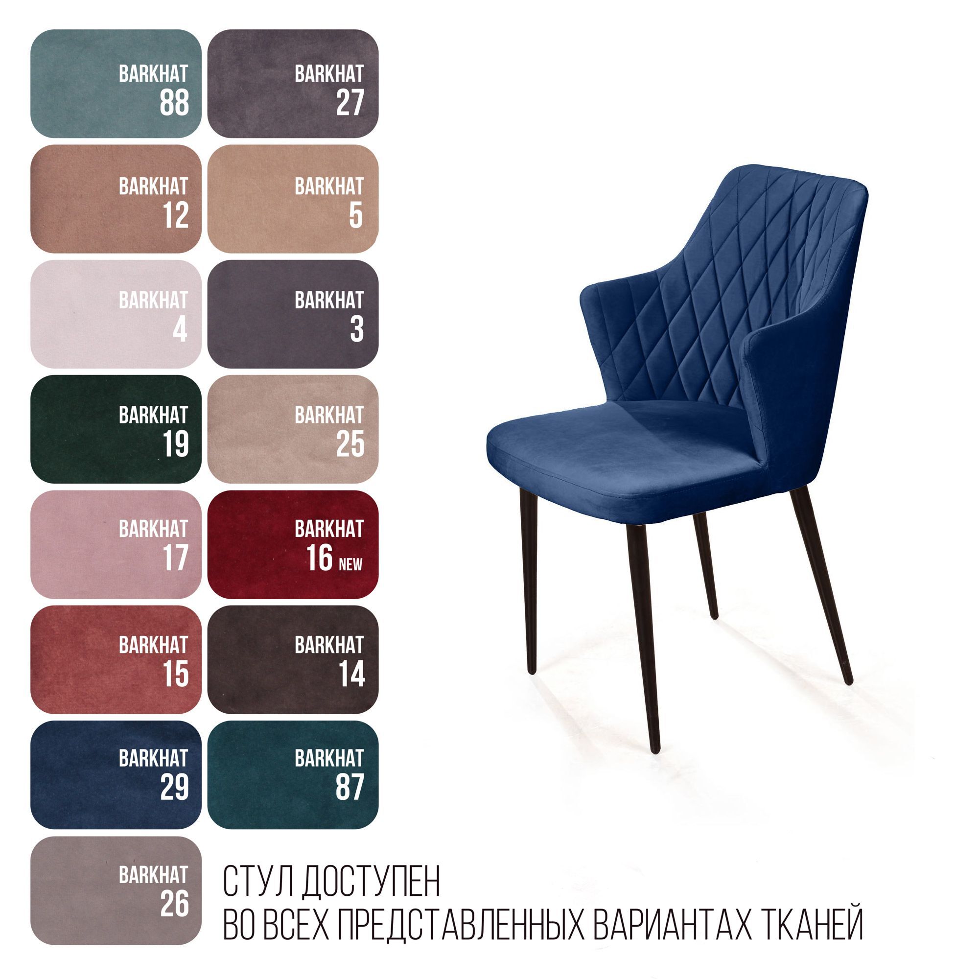 strong*Оттенок может выглядеть по-разному в зависимости от направления ворса./strong Дизайнерский стул «Hunt» c отделочной строчкой в виде ромба и острыми подлокотниками выглядит стильно и эффектно. Каркас Прочный металлический каркас обеспечит продолжительный срок службы. Наполнение В качестве наполнителя используется формованный высокопрочный пенополиуретан. При ежедневной эксплуатации на протяжении длительного времени он сохранит первоначальную форму. Данное наполнение - гарантия продолжительного срока службы изделия что особенно важно для коммерческого использования. Опоры Металлические опоры черного матового цвета в форме «конус». На опорах предусмотрены защитные пластиковые накладки, которые придают стулу дополнительную устойчивость и защищают пол от царапин. Гарантия Тщательная проверка качества изделий осуществляется на всех этапах производства: от подбора материалов и комплектующих до проверки готового изделия перед отправкой. На все изделия Top concept мы предоставляем гарантию 18 месяцев.