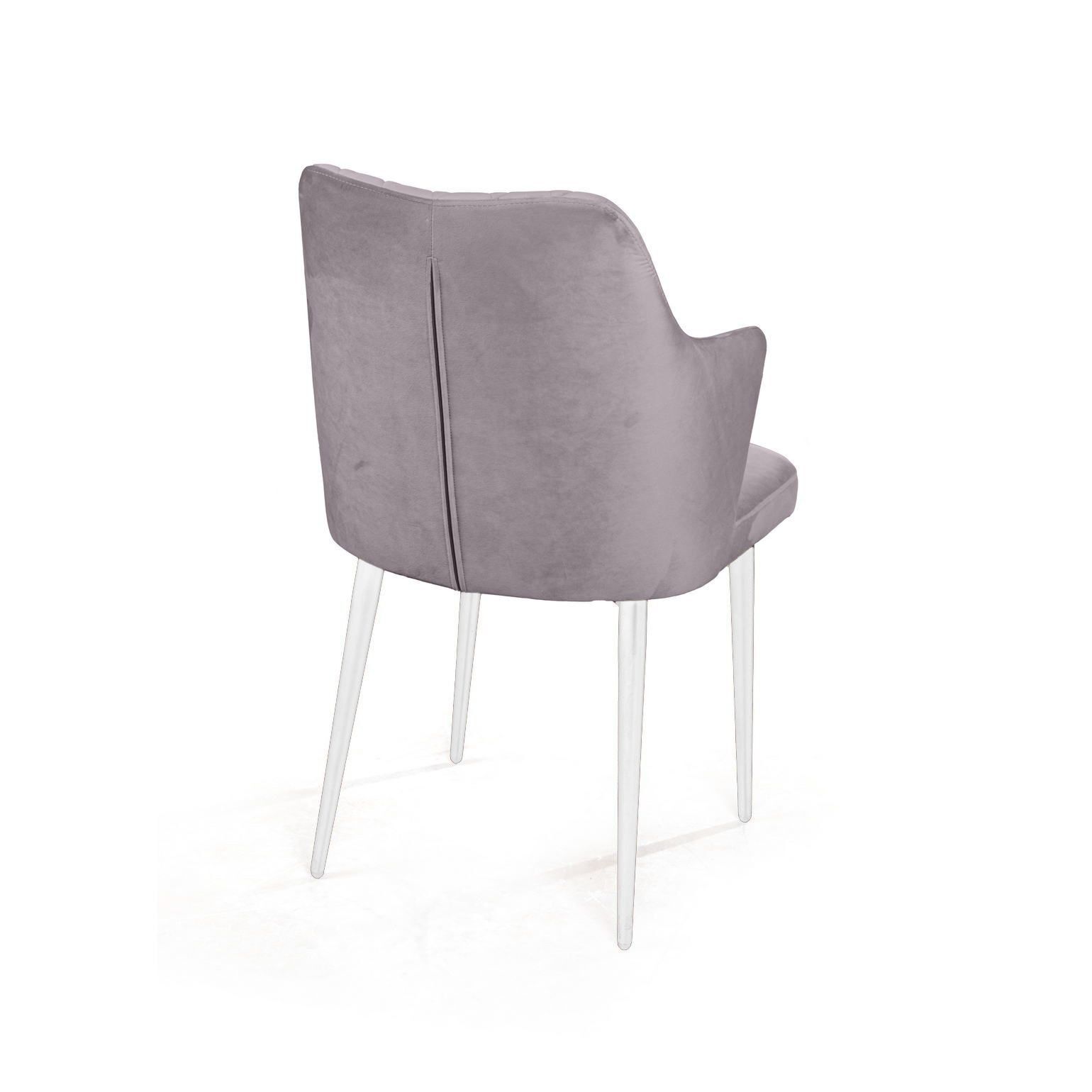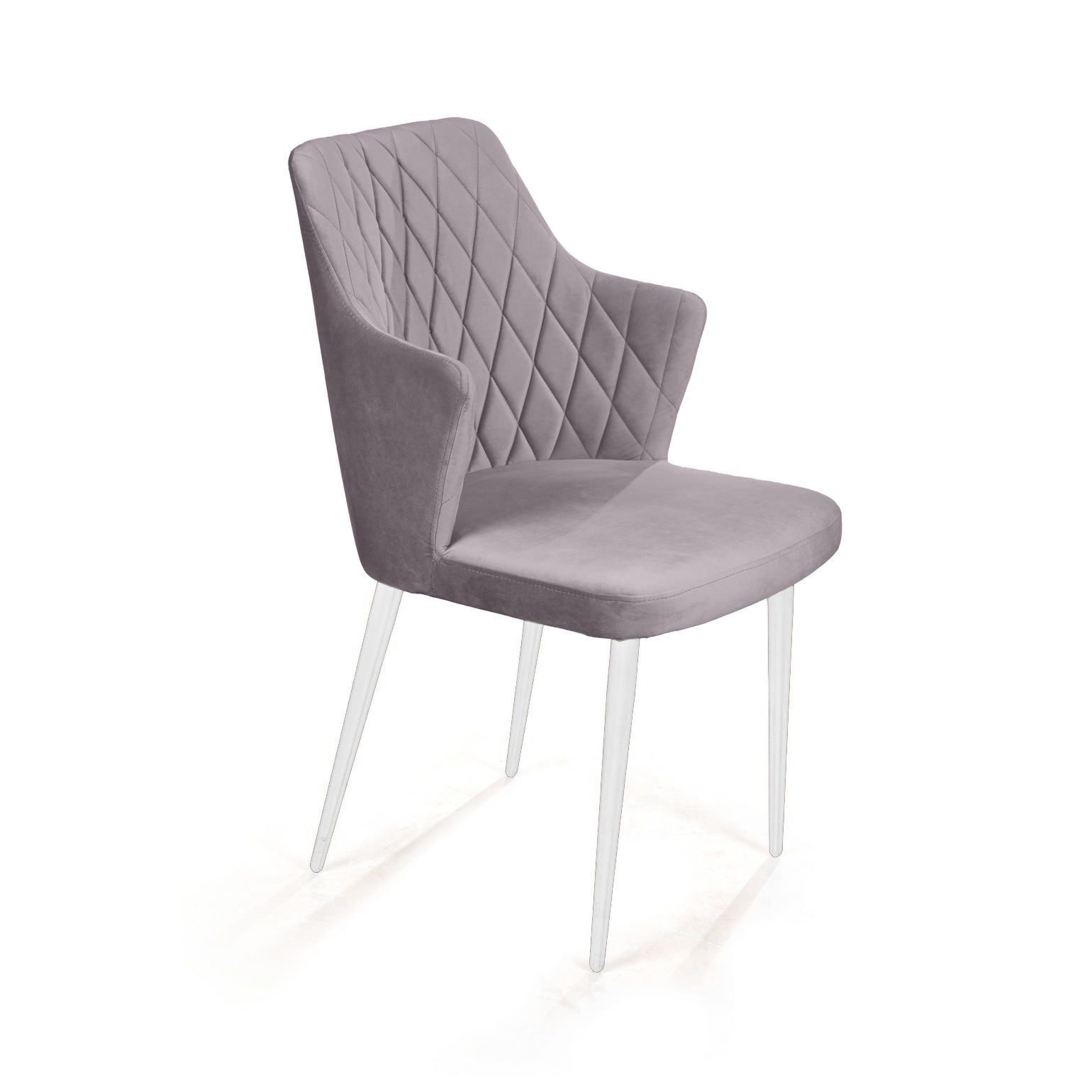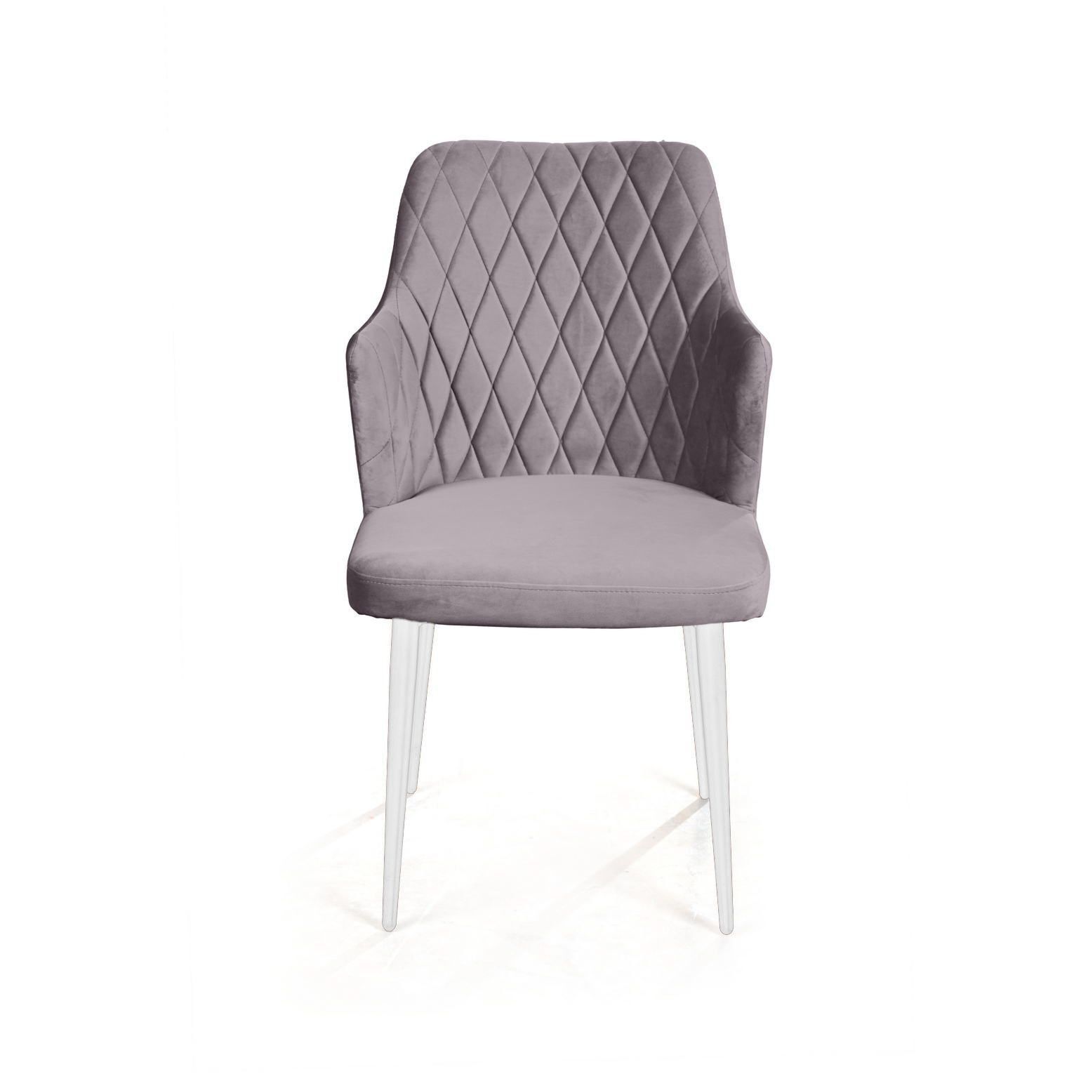 Стул с подлокотниками Hunt ромб, бархат светло-серый 26 / белый конус
