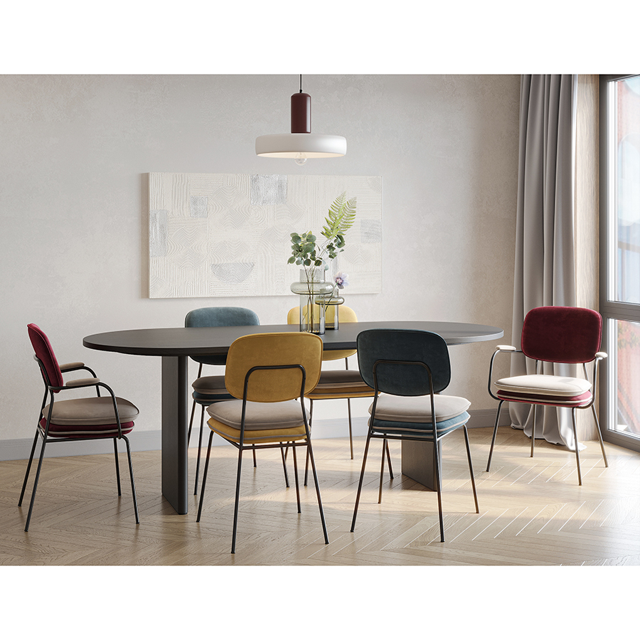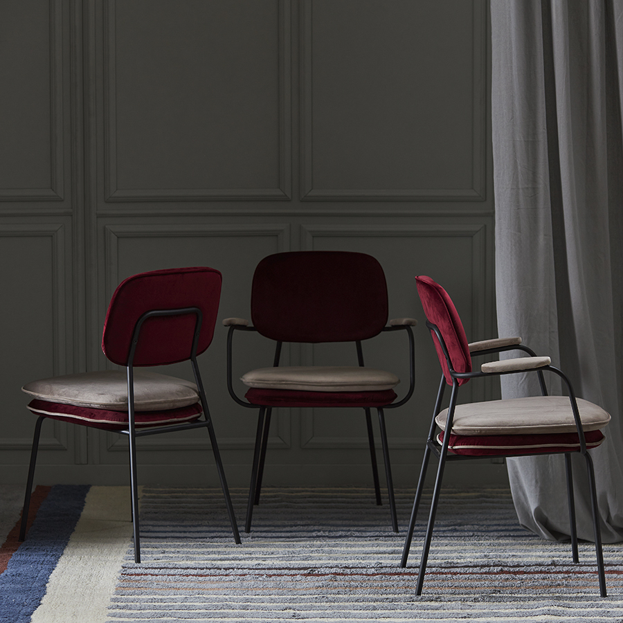 Стул Pea с подлокотниками, контрастным кантом и мягкой обивкой из бархатистого велюра станет настоящим украшением интерьера и идеальным выбором для ценителей качественной и элегантной мебели.