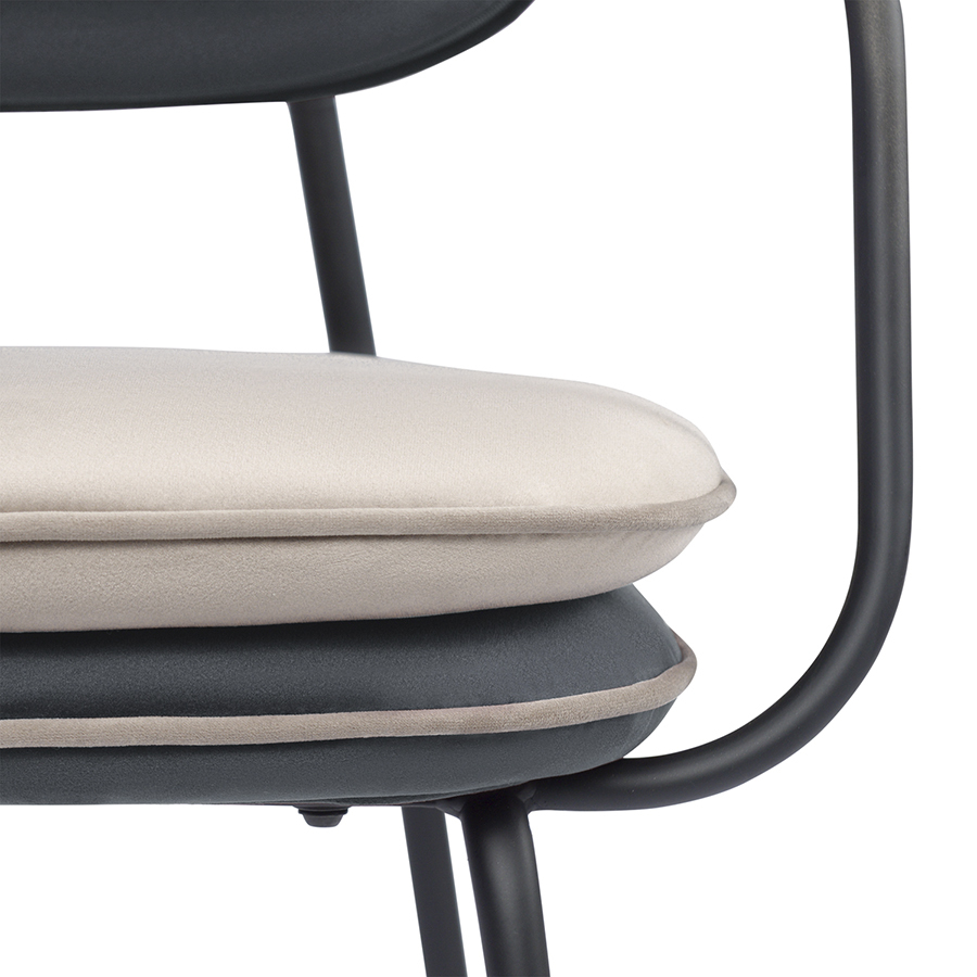 Стул Pea с подлокотниками, контрастным кантом и мягкой обивкой из бархатистого велюра станет настоящим украшением интерьера и идеальным выбором для ценителей качественной и элегантной мебели.