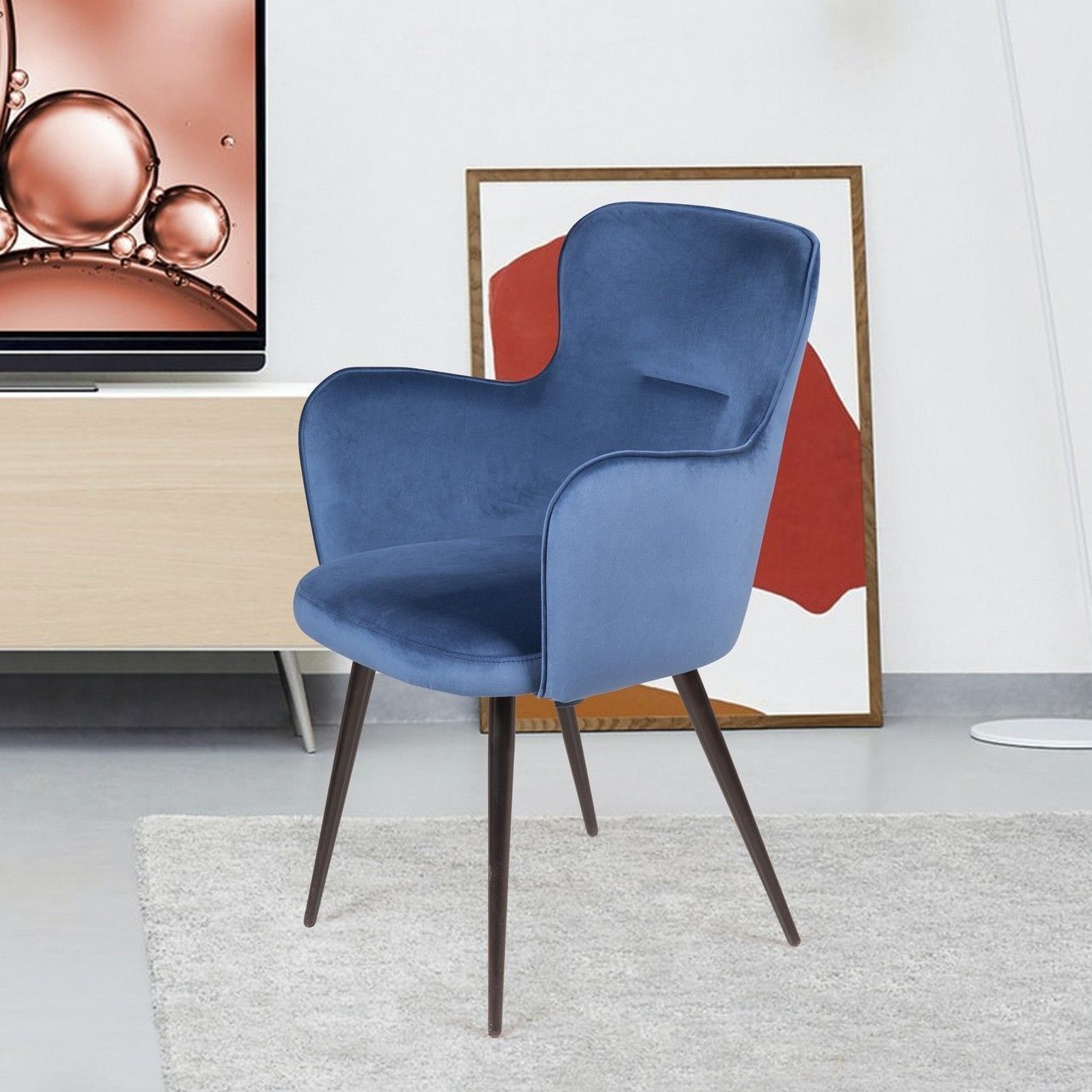 Стул с подлокотниками King, бархат синий 29